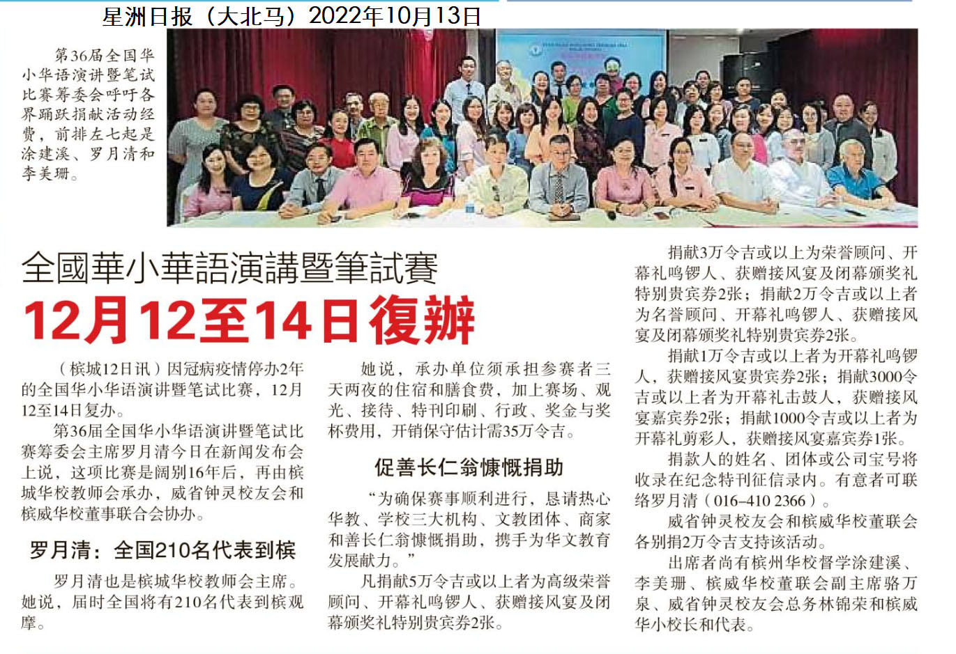 全国华小华语演讲暨笔试赛 12月12至14日复办