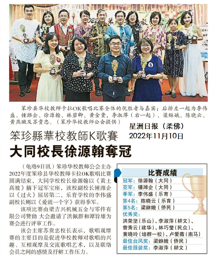 笨珍县华校教师K歌赛 大同校长徐源翰夺冠