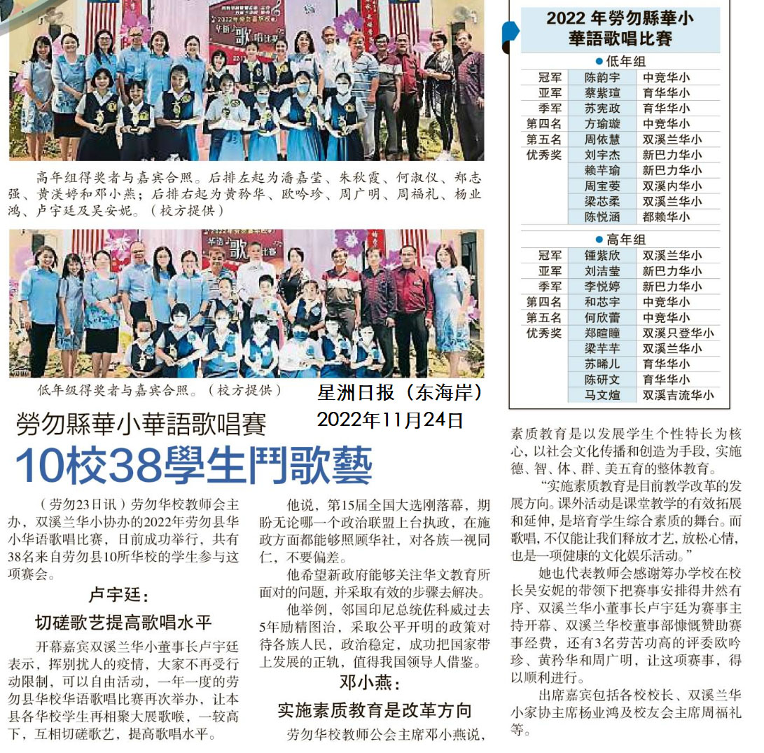 劳勿县华小华语歌唱赛 10校38学生斗歌艺