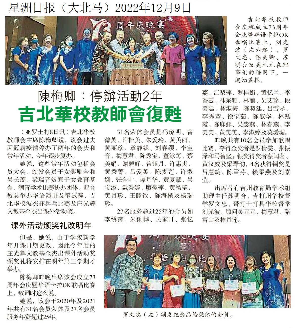 陈梅卿:停办活动2年 吉北华校教师会复办