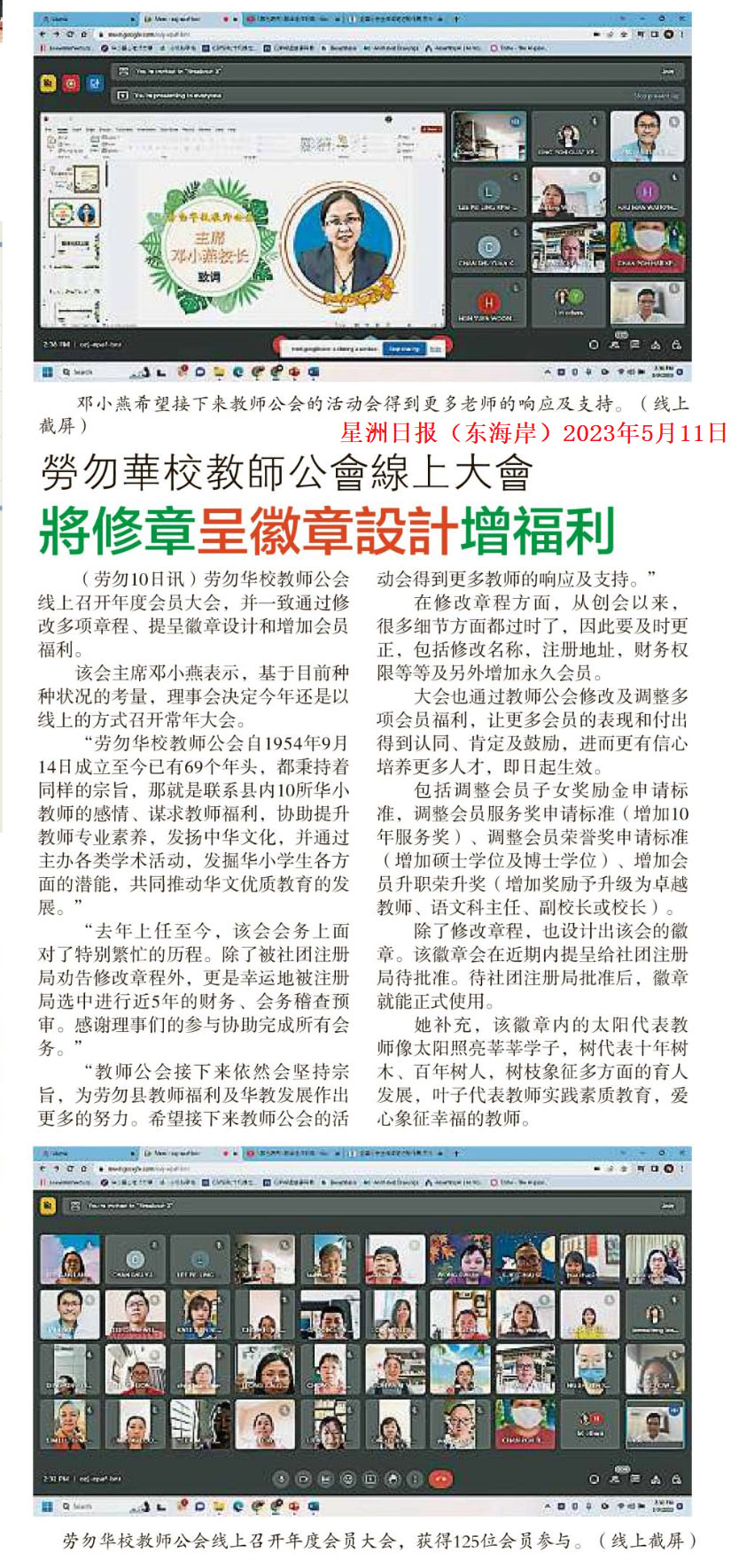 劳勿华校教师公会线上大会 将修章程徽章设计增福利