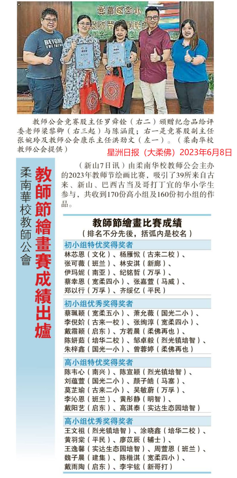 柔南华校教师公会 教师节绘画赛成绩出炉