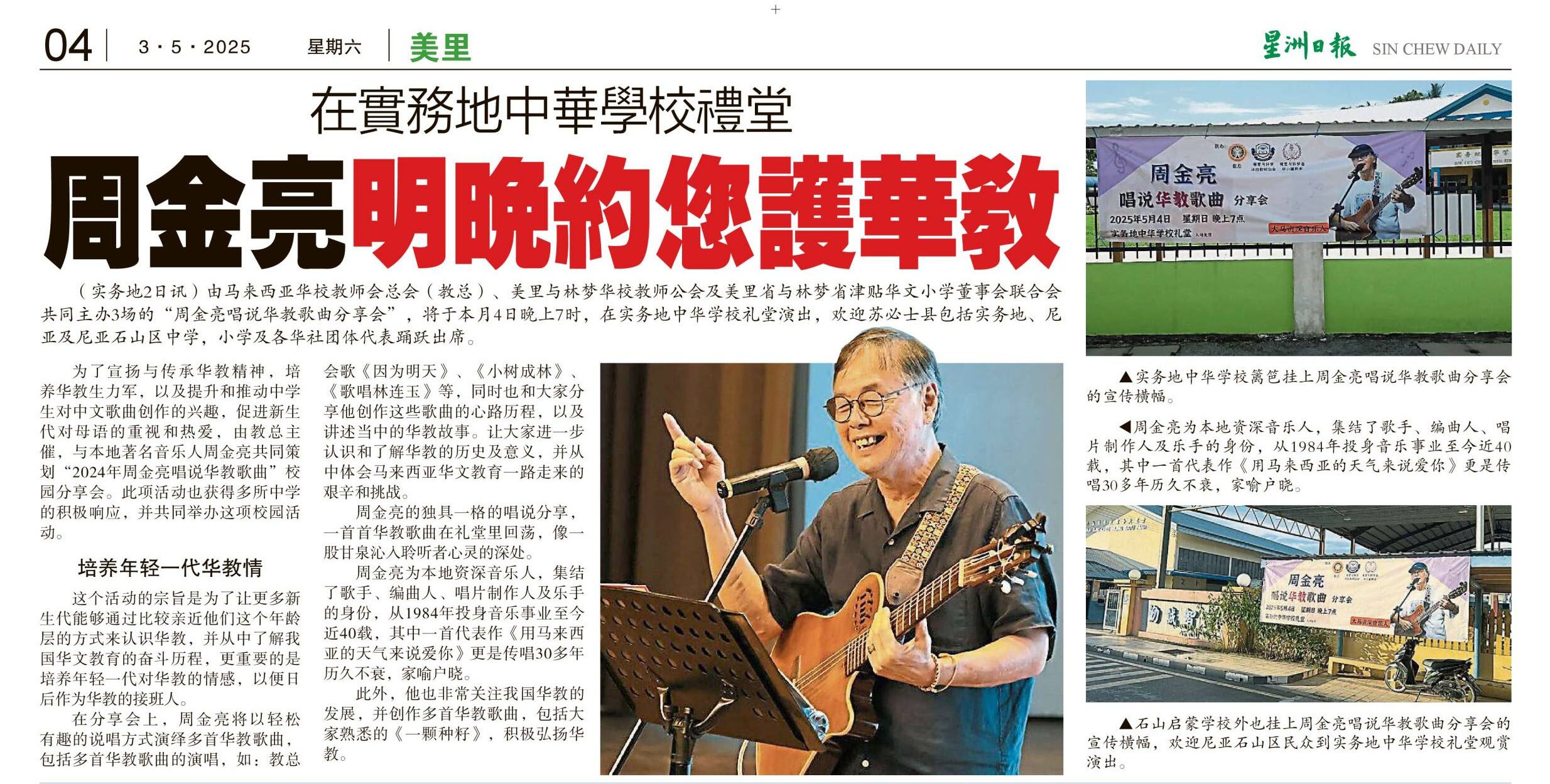 在实务地中华学校礼堂 周金亮明晚约您护华教