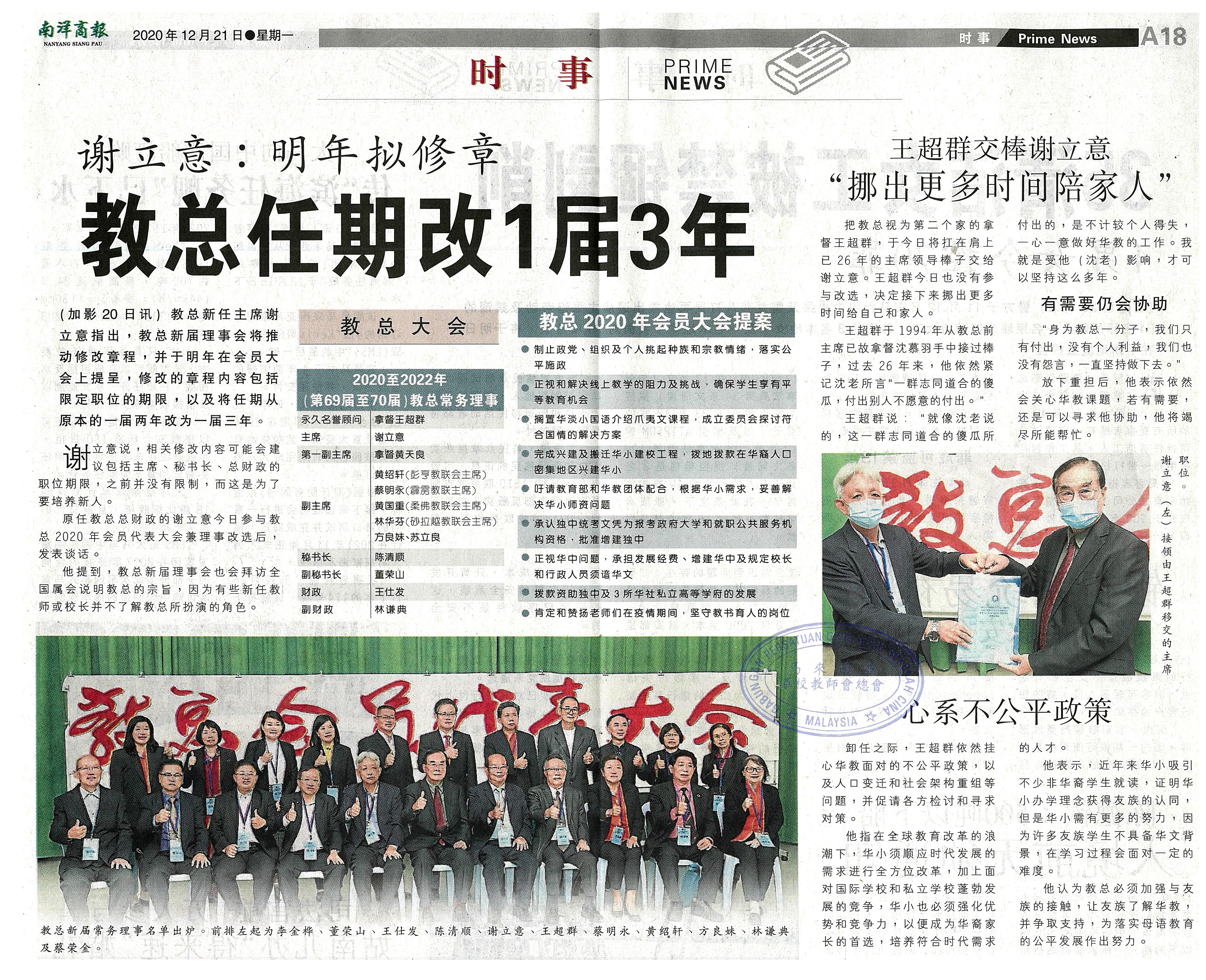 下一篇文章: 感谢关心大马华教 董教总留华同学会欢送白天
