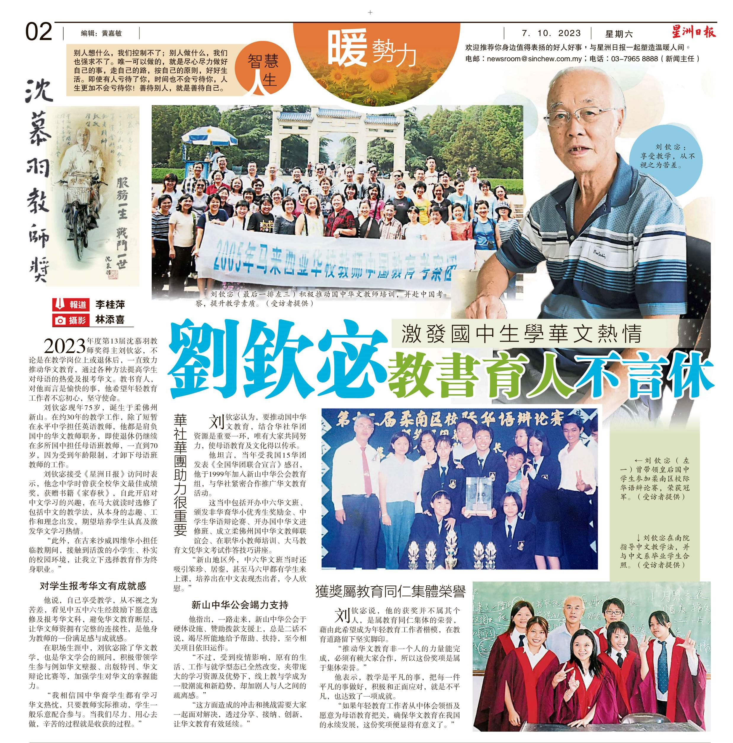 刘钦宓 激发国中生学华文热情 教书育人不言休