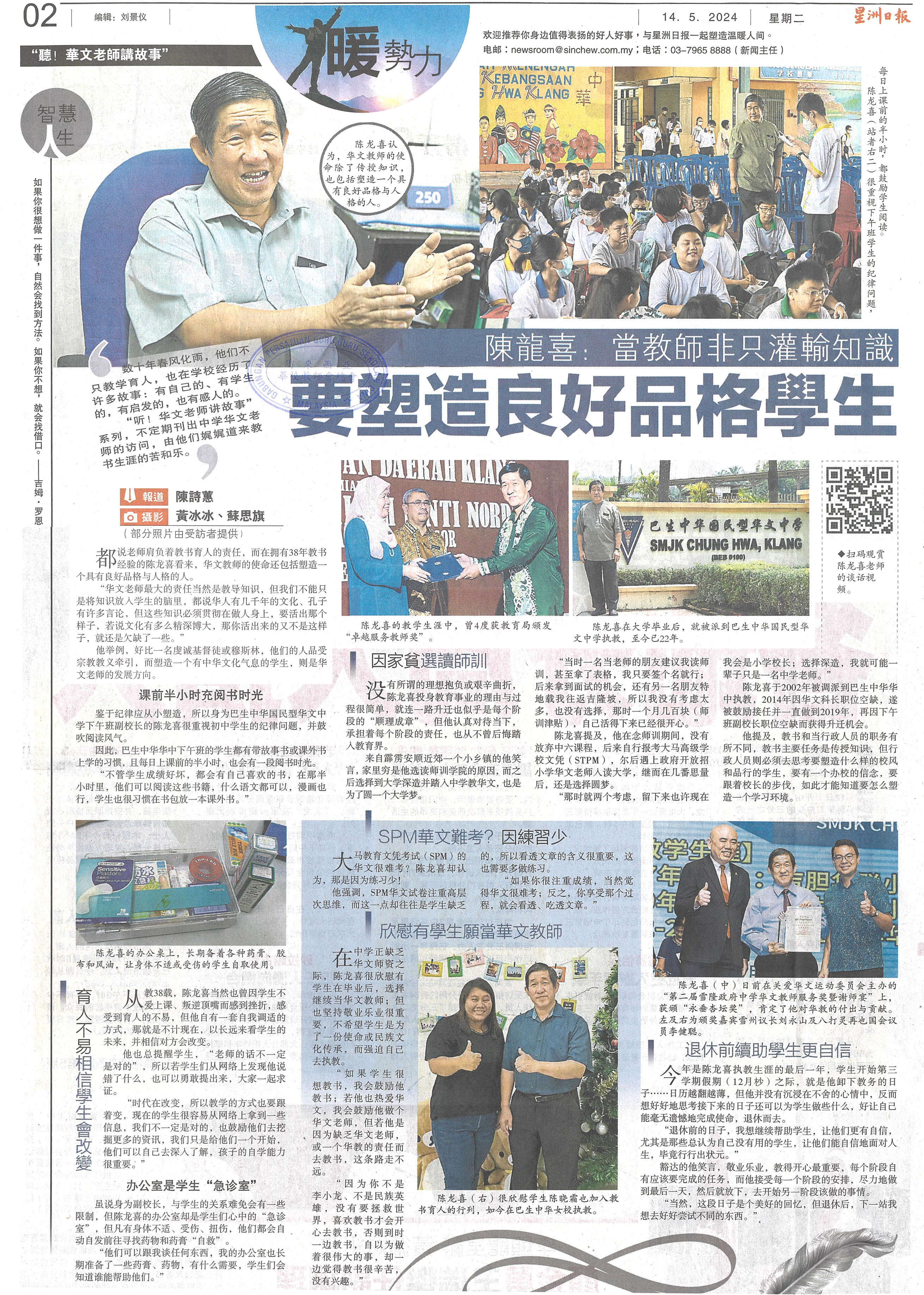 陈龙喜:当教师非只是灌输知识 要塑造良好品格学生 WhatsApp 上一篇文章: 蔡春梅:一句话能让人终生受用 用心讲道理 盼学生开窍 上一页 下一篇文章: 竞明华小走过118年华丽蜕变 雪最古老华小 下一页