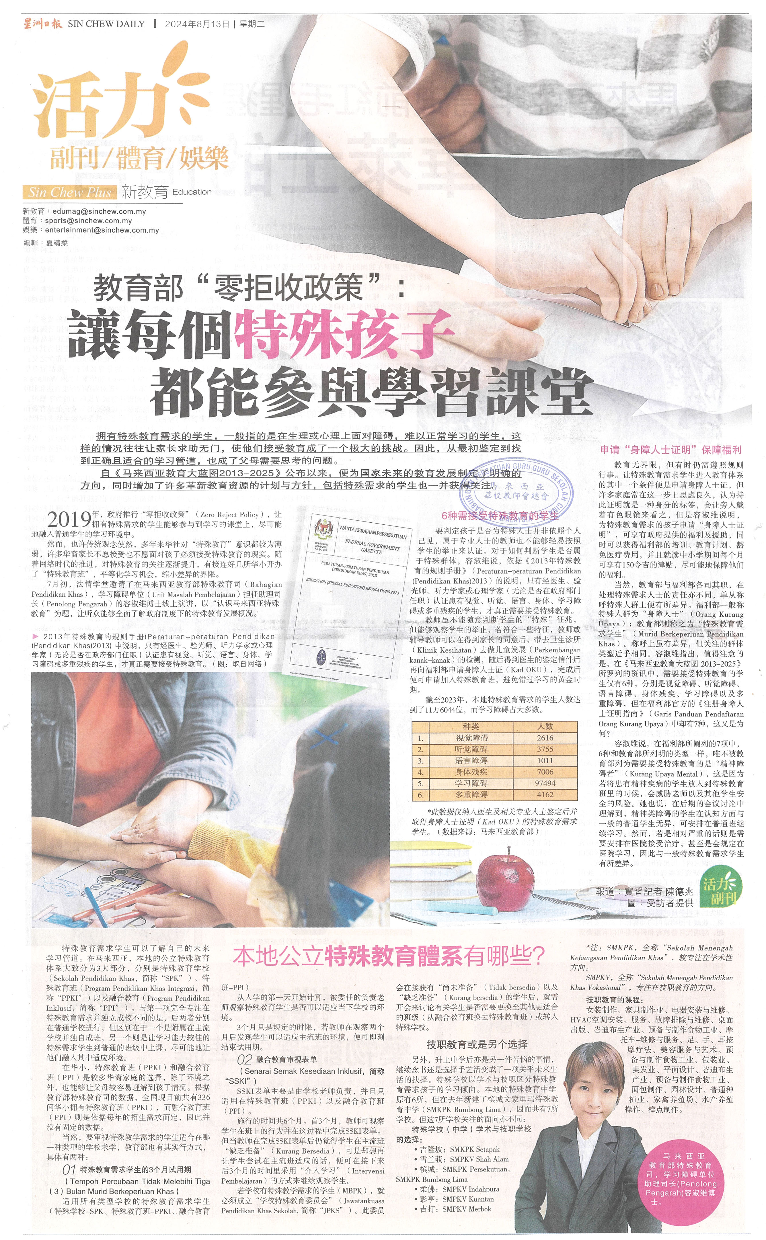 教育部“零拒收政策”:让每个特殊孩子都能参与学习课堂 WhatsApp 上一篇文章: 郭史光宏:“学生阅读计划”:失焦的指南针永远走不到目的地 上一页 下一篇文章: 伍燕翎:有为且有容的 华仁中学校长严元章 下一页