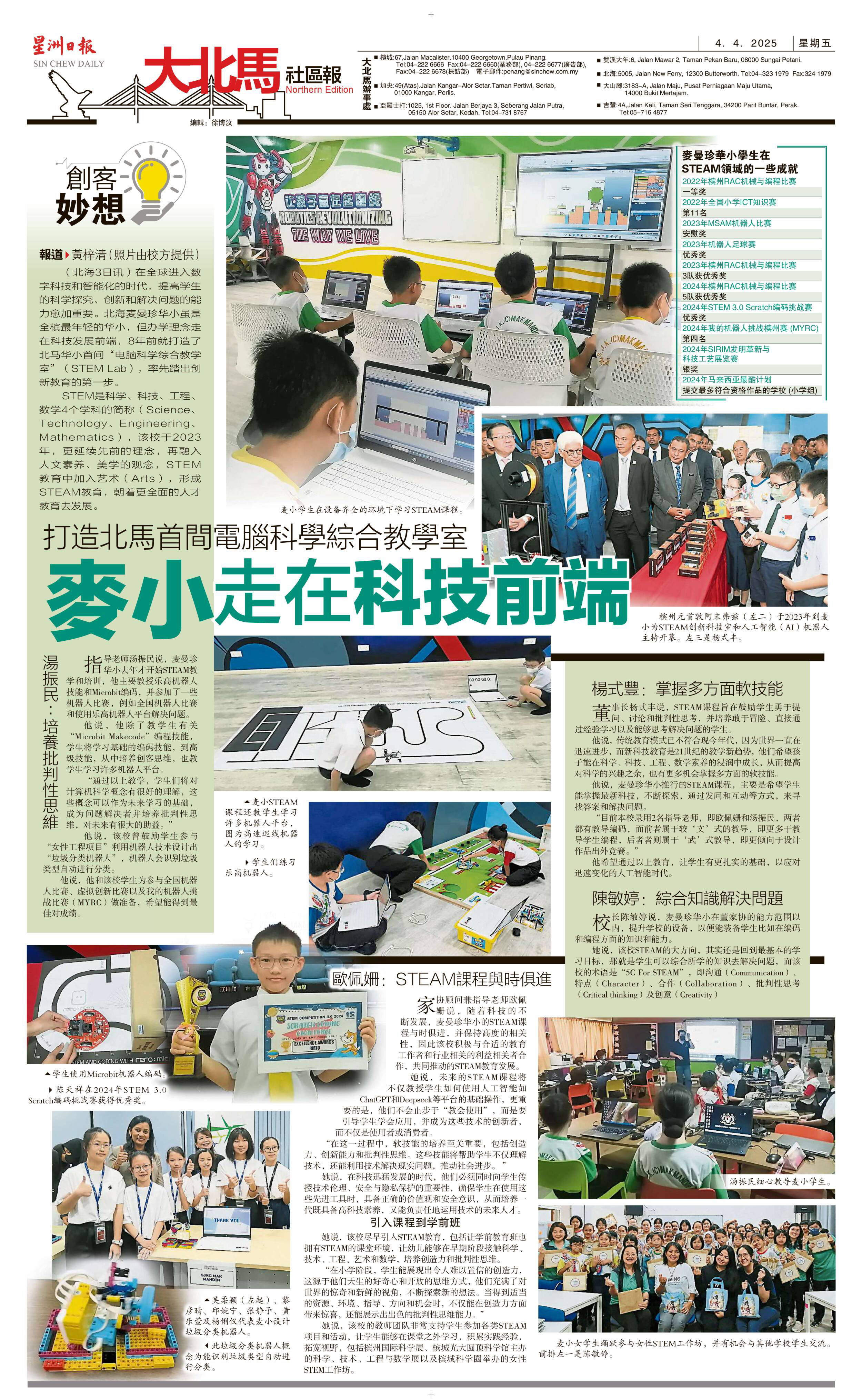 参与STEM赛事频频获奖 金星学生“想到就能做到” WhatsApp 上一篇文章: 学员创新思维解决机械难题 吉华S校 创造无限可能 上一页 下一篇文章: 出钱出力推动迁校 福灵宫利民华小血浓于水。 下一页