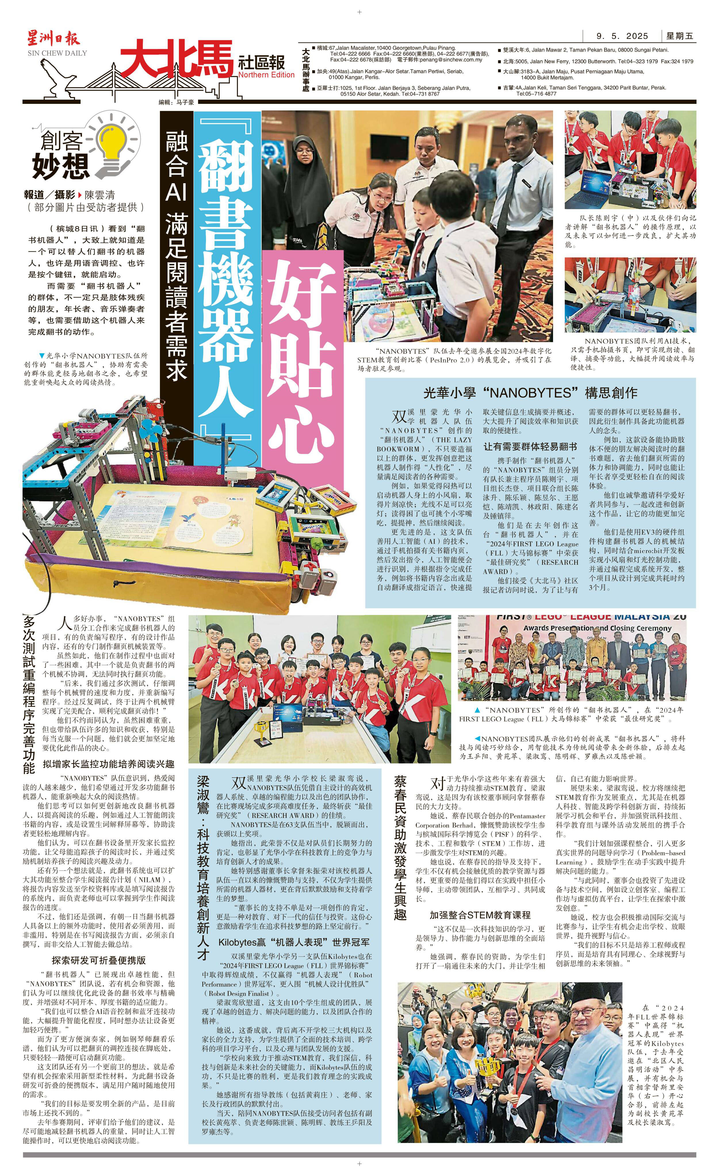 融合AI 满足阅读者需求“翻书机器人”好贴心 WhatsApp 上一篇文章: 班上唯一华裔 包容尊重差异 华小成族群融合大熔炉 上一页 下一篇文章: AI时代新教育·思维大转向,从教答案到教发问 下一页