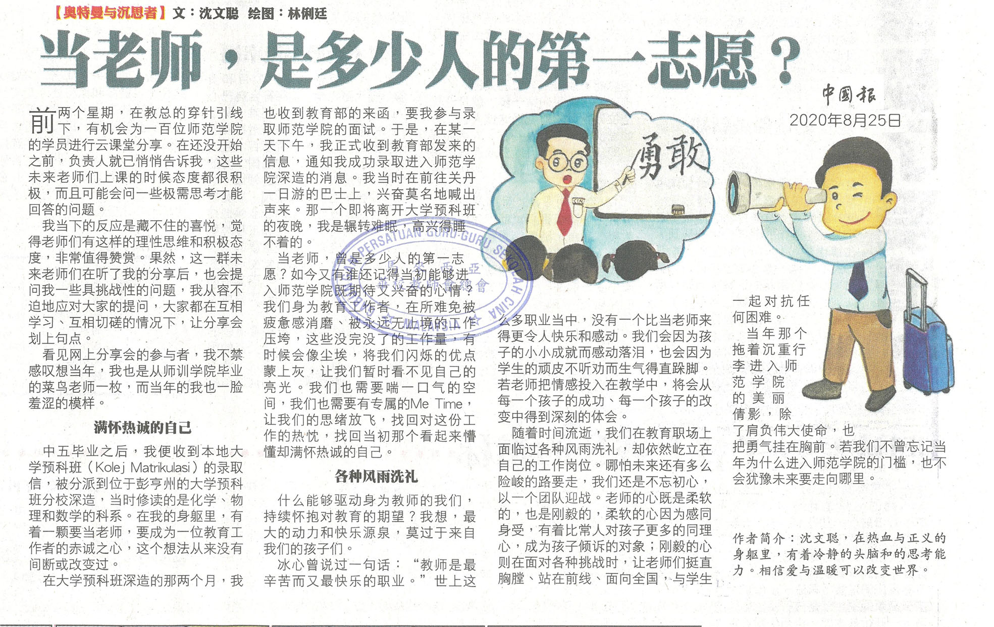 沈文聪:当老师,是多少人的第一志愿?(中国报副刊)