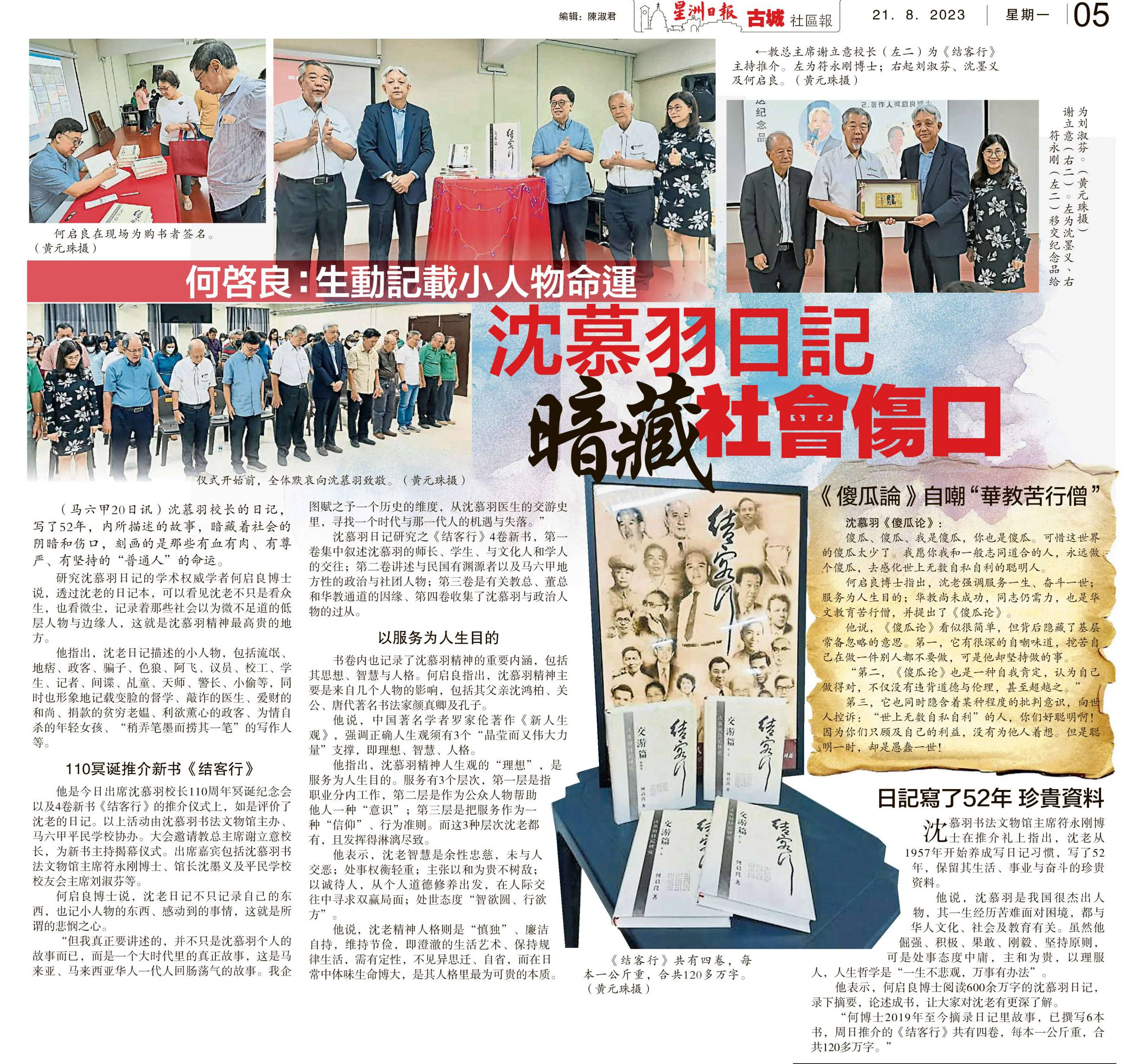 何启良:生动记载小人物命运 沈慕羽日记 暗藏社会伤口