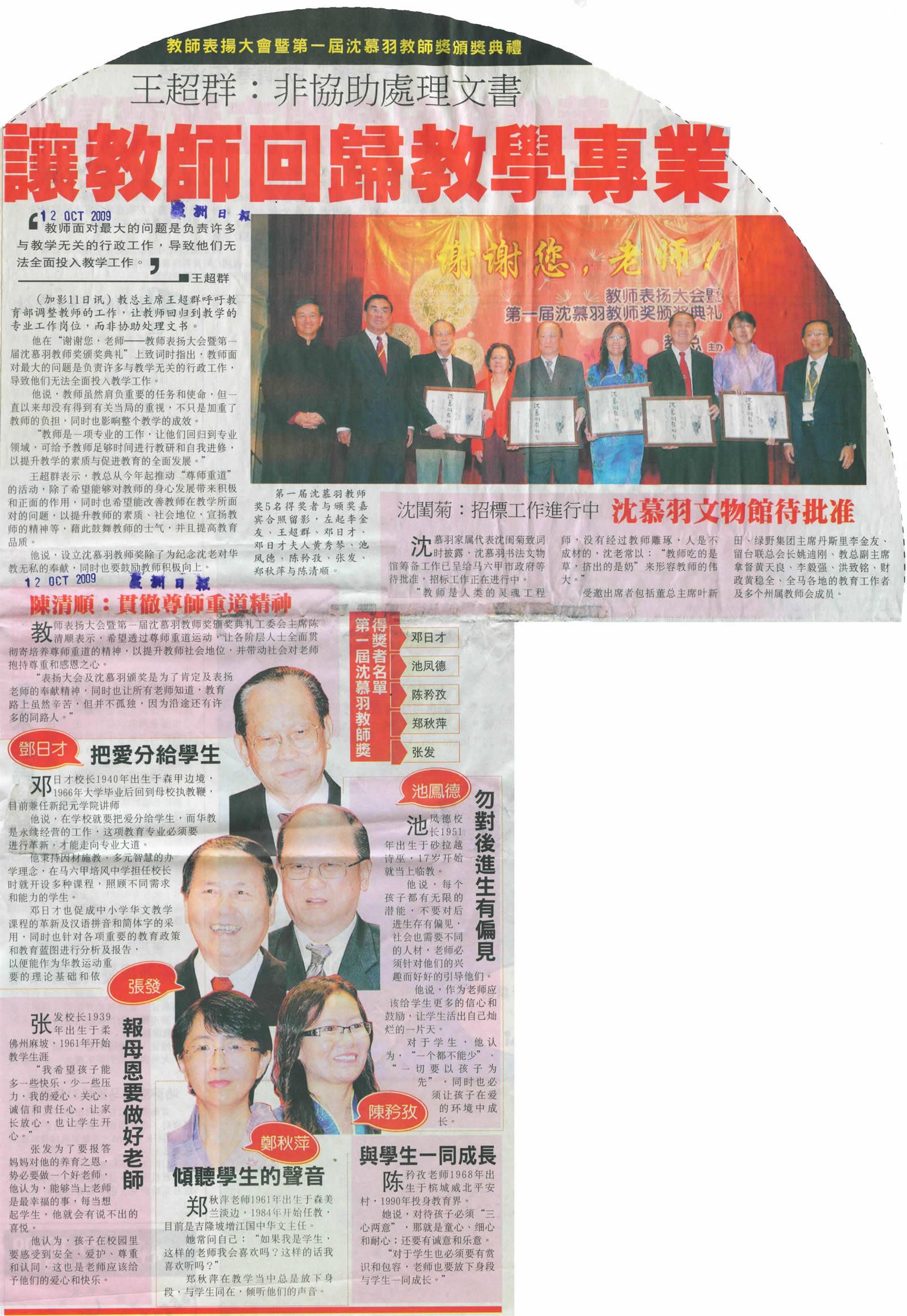 让教师回归教学专业(星洲日报) 让教师回归教学专业(星洲日报 10月12日) 下载:点击 资料来源:教总调查研究及资讯组整理 WhatsApp 上一篇文章: 首届沈慕羽教师奖 千名教师共襄盛举(南洋商报) 上一页 下一篇文章: 千人见证颁沈慕羽教师奖(光明日报) 下一页