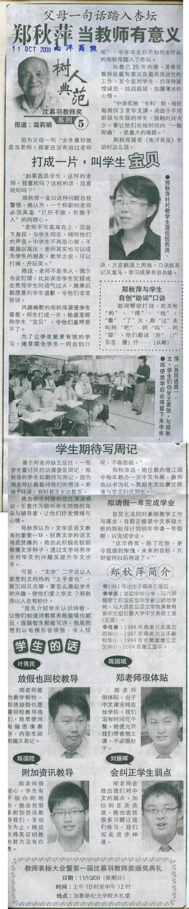 郑秋萍当教师有意义(南洋商报) 郑秋萍当教师有意义(南洋商报 10月11日) 下载:点击 资料来源:教总调查研究及资讯组整理 WhatsApp 上一篇文章: 教总沈慕羽教师奖得奖人简介(中国报) 上一页 下一篇文章: 《沈慕羽教师奖》杏坛教职人员展现无私奉献(马新社中文网) 下一页