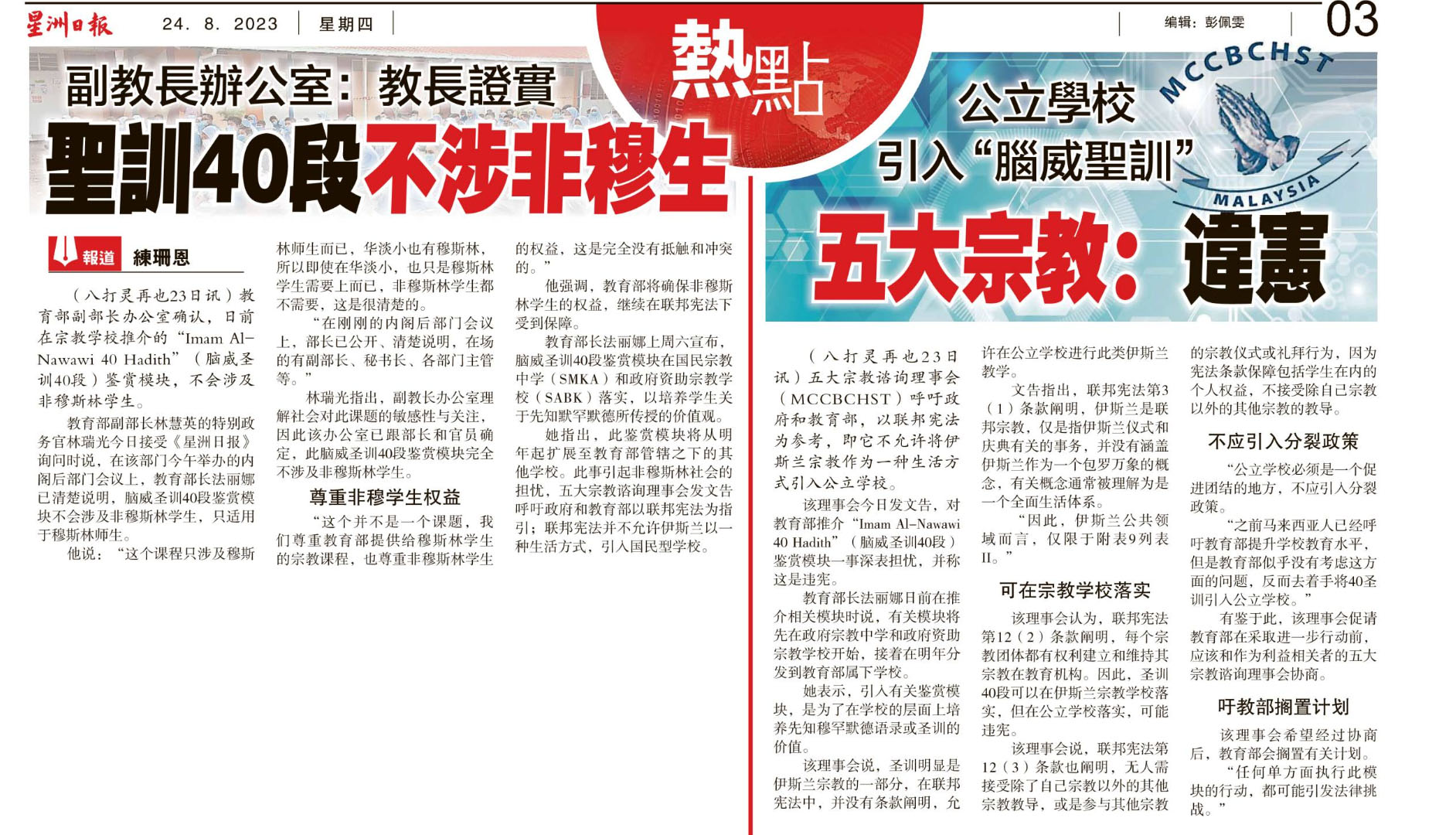上一篇文章: 教育部推介“四十圣训”新闻剪报