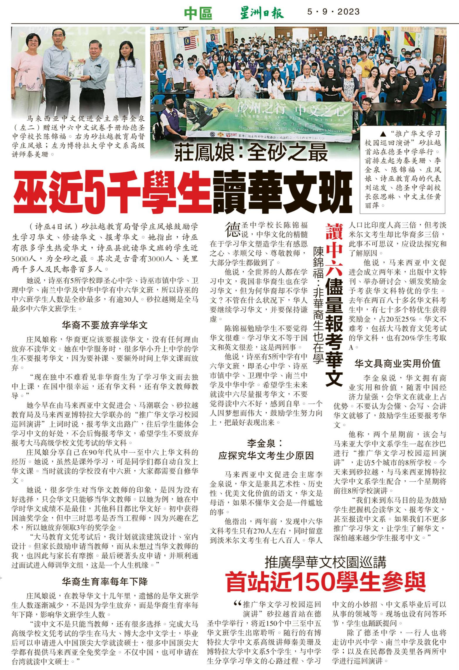 庄凤娘:全砂之最 诗巫近5千学生读华文班