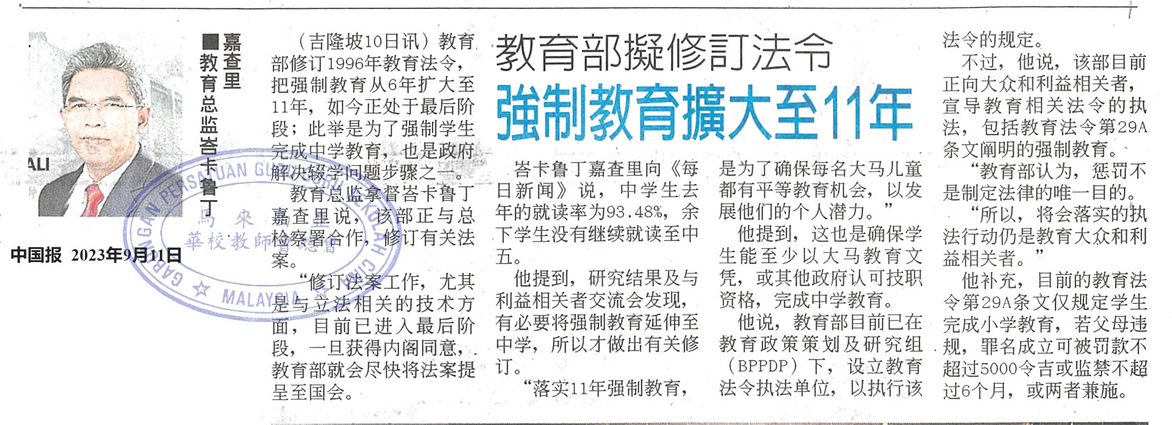 教育部拟修订法令 强制教育扩大至11年