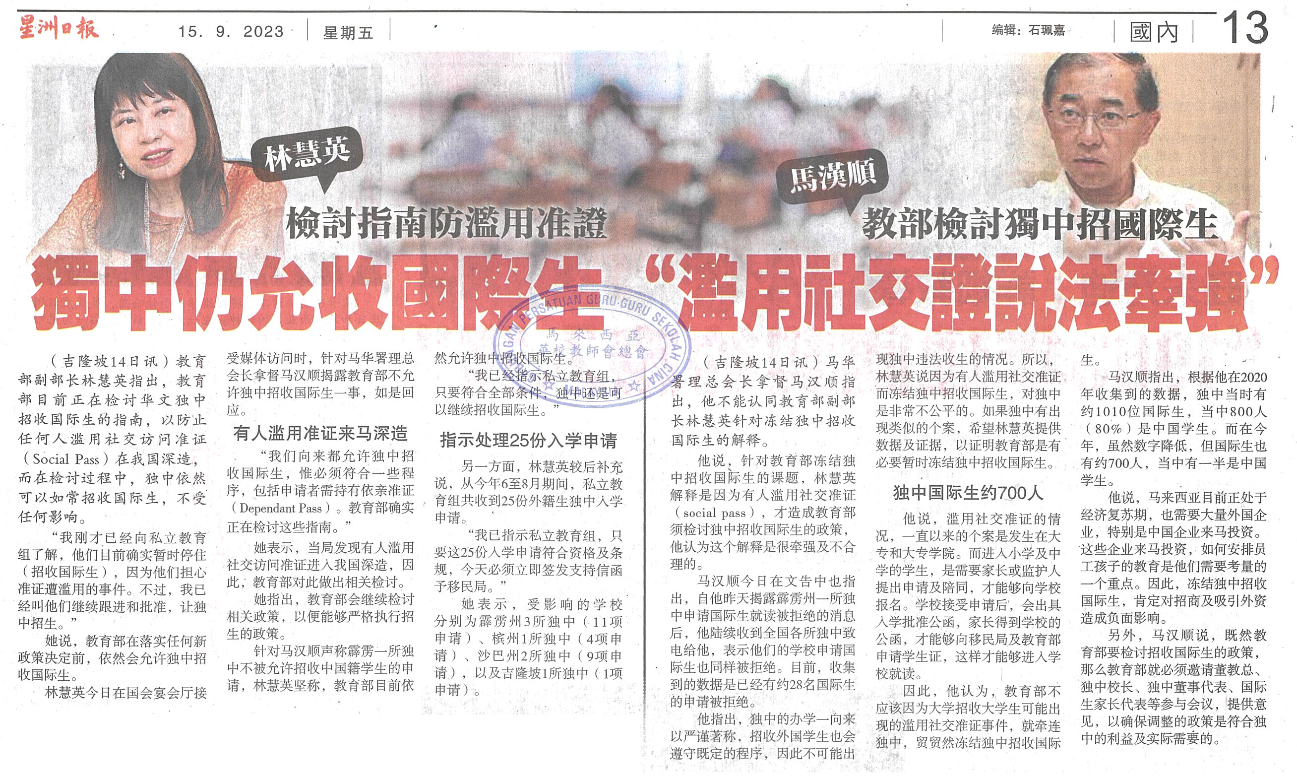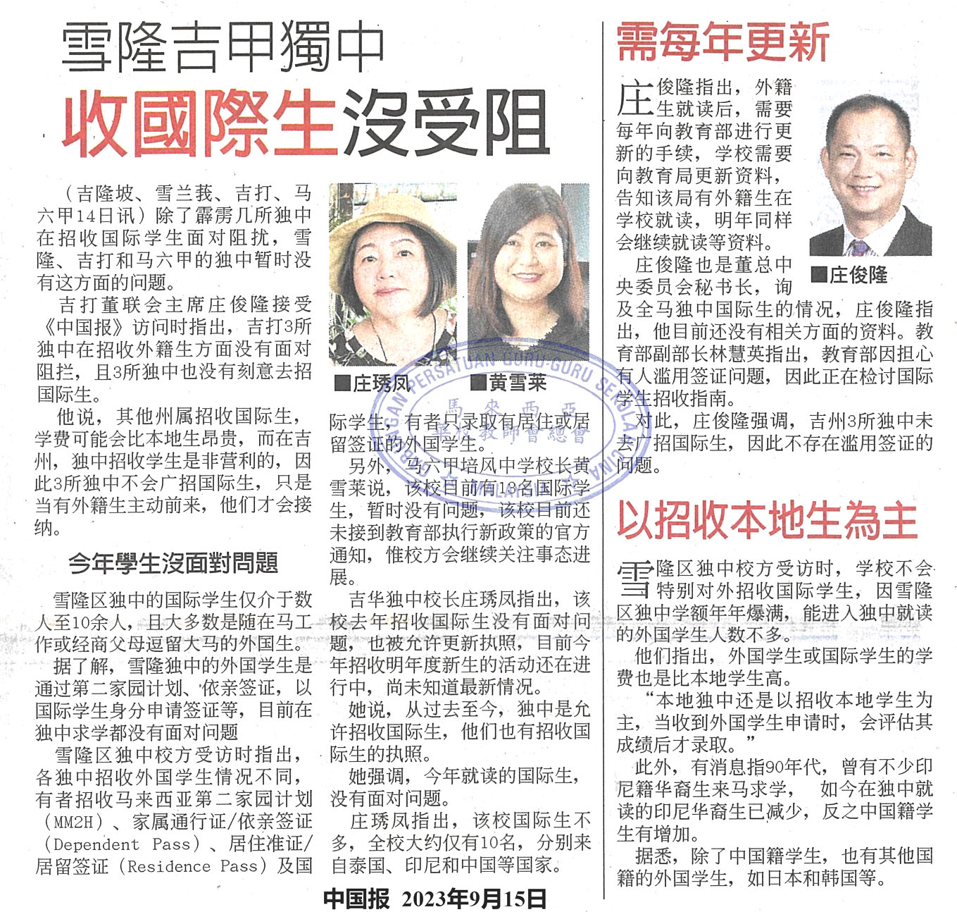 华文独中招收国际学生
