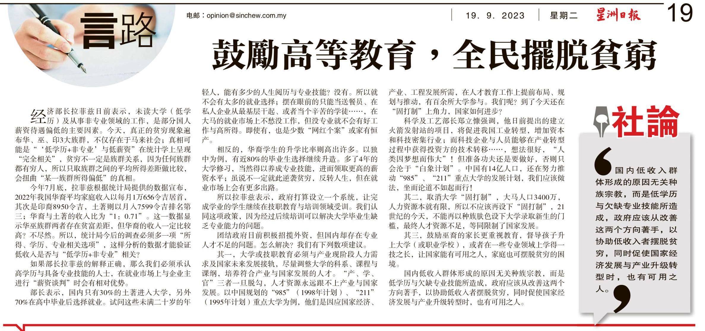 鼓励高等教育 全民摆脱贫穷