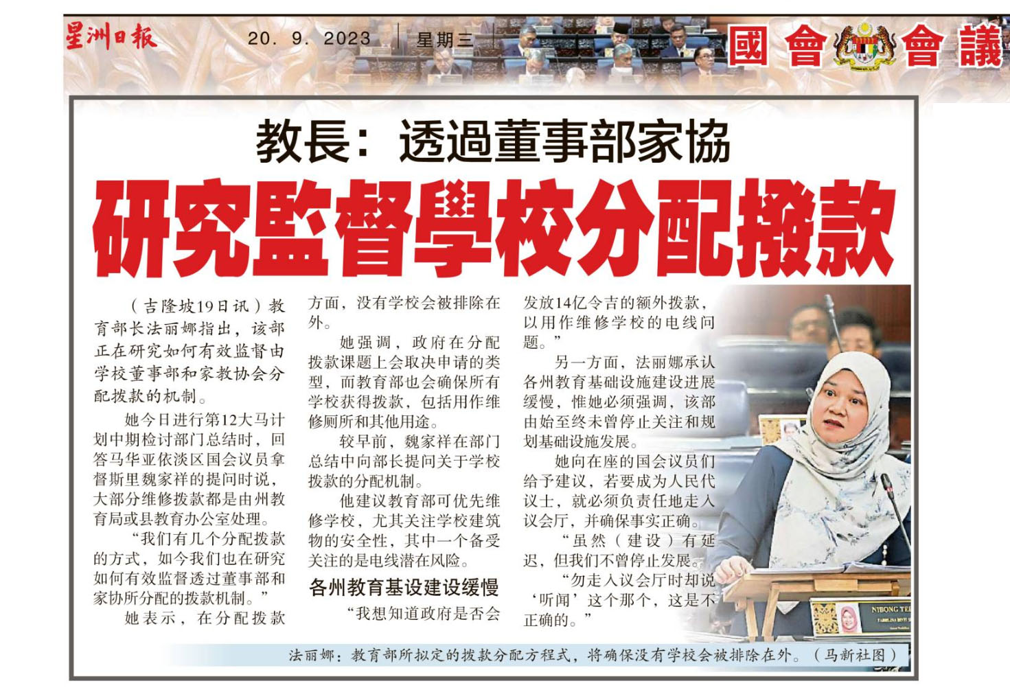 教长:透过董事部家协 研究监督学校分配拨款