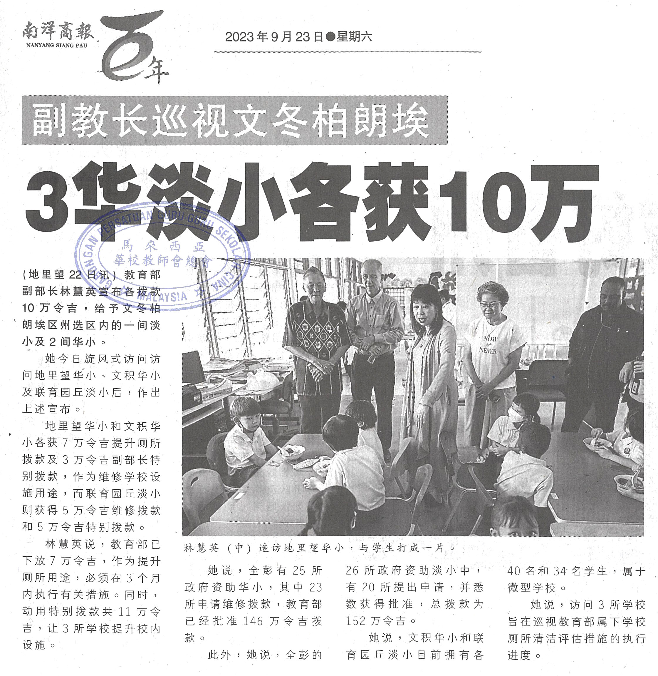 副教长巡视文冬柏郎埃 3华淡小各获10万