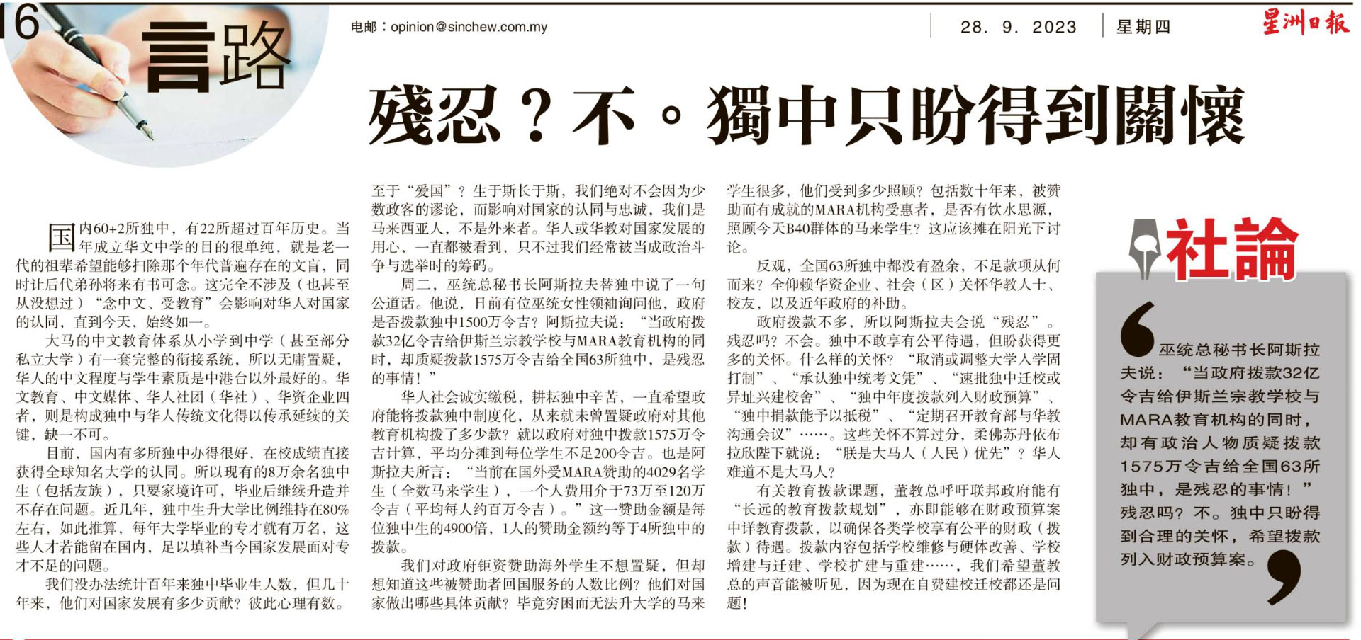 残忍?不。独中只盼得到关怀