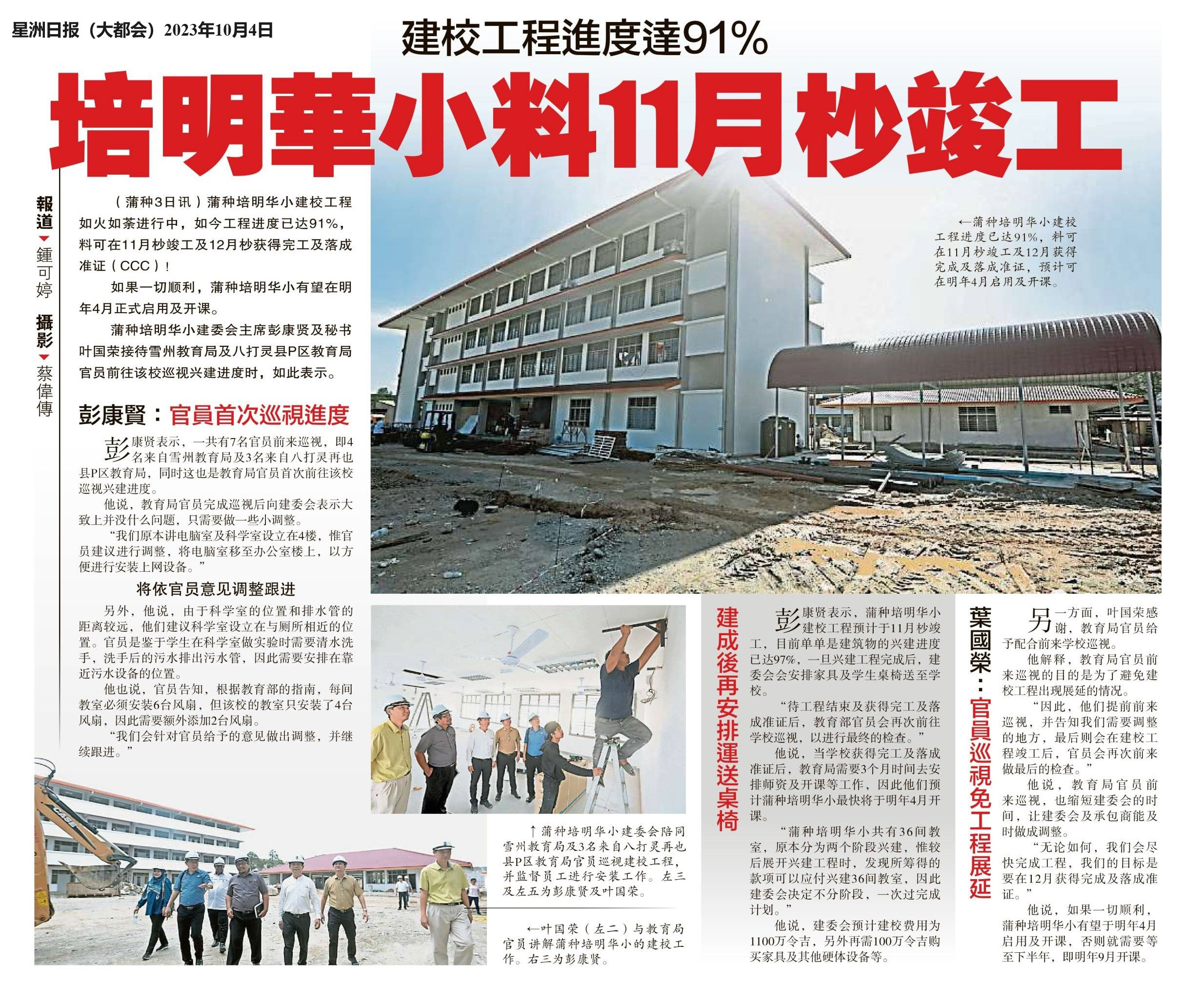 建校工程进度达91% 培明华小料11月竣工