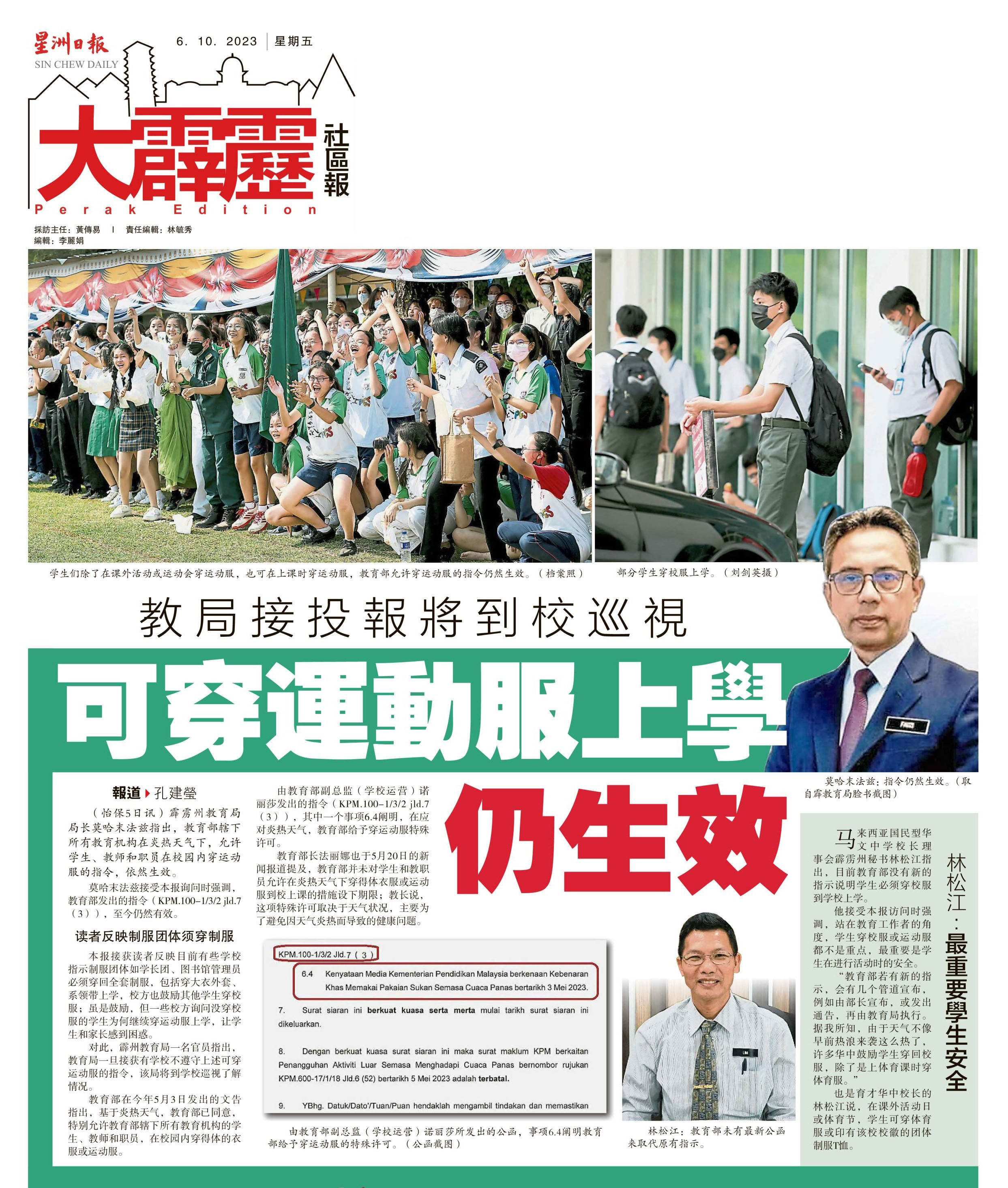 教育局接投报将到校巡视 可穿运动服上学仍生效