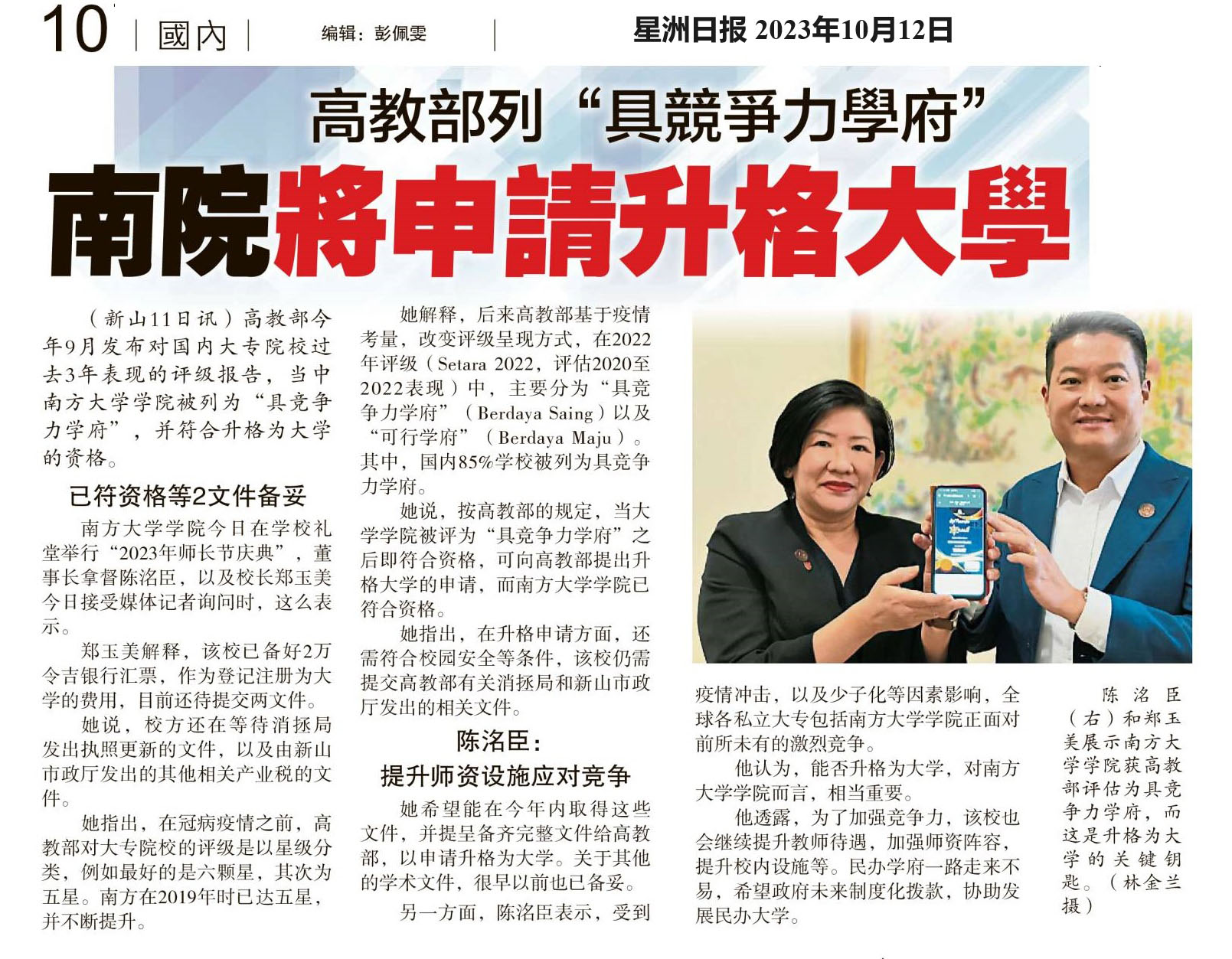 高教部列“具竞争力学府” 南院将申请升格大学 WhatsApp 上一篇文章: 教育部:宗教学校开跑 即起落实四十圣训鉴赏 上一页 下一篇文章: 森政府3年拨各源流学校逾278万 华小仅获13.5万 占4.8% 下一页