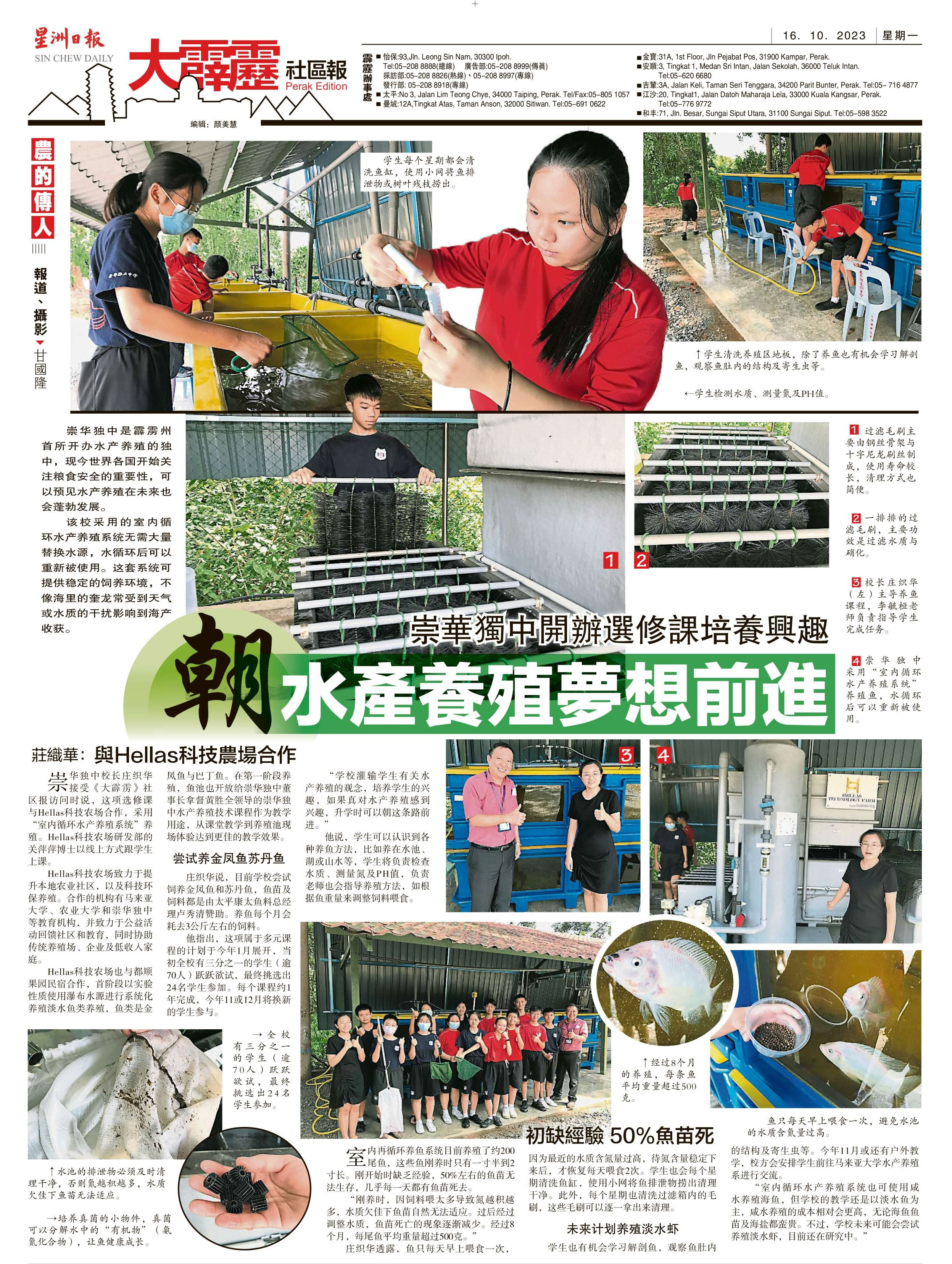崇华独中开办选修课培养兴趣 朝水产养殖梦想前进