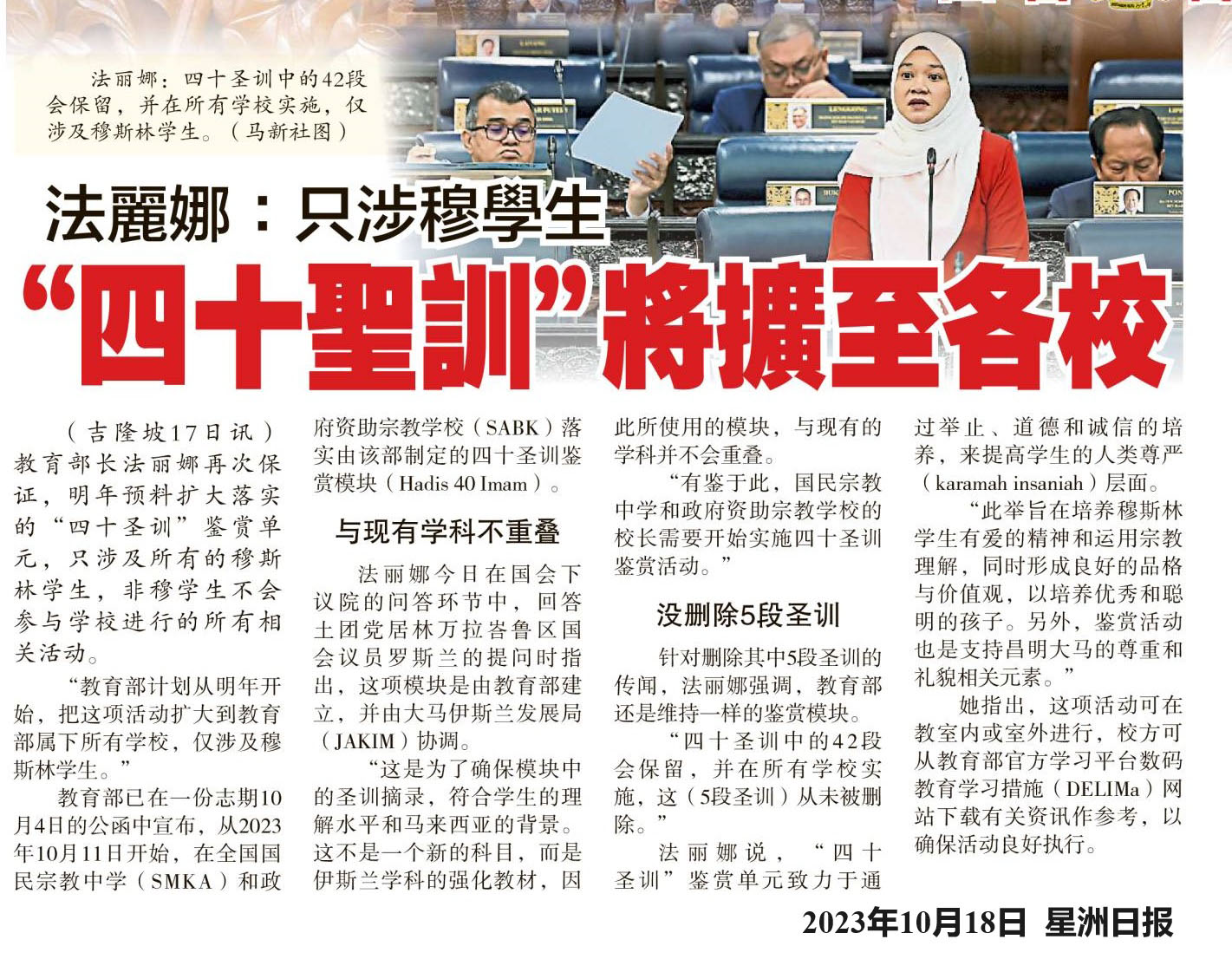法丽娜:只涉穆学生“四十圣训”将扩至各校
