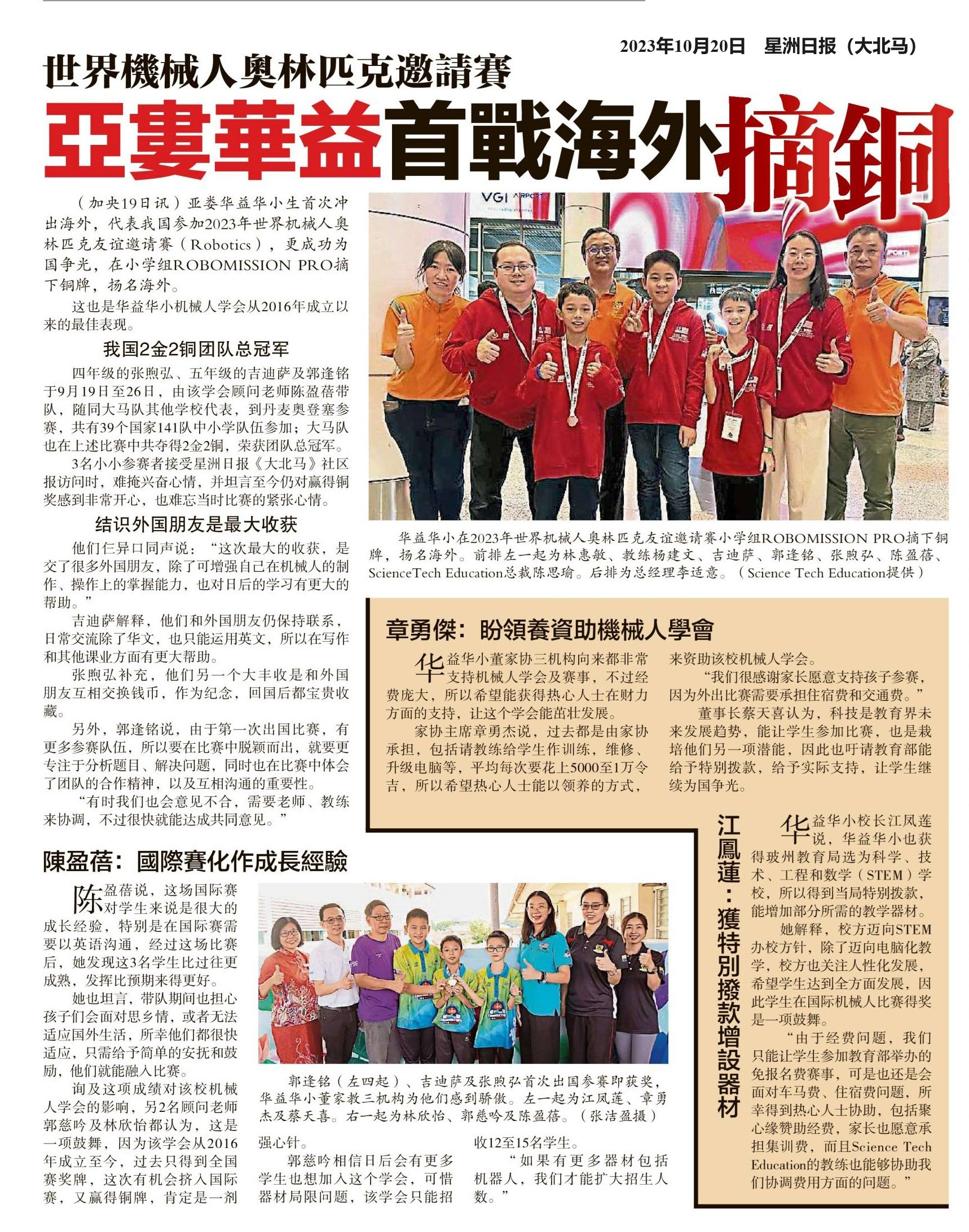世界机械人奥林匹克邀请赛 亚娄华益华小首战海外摘铜