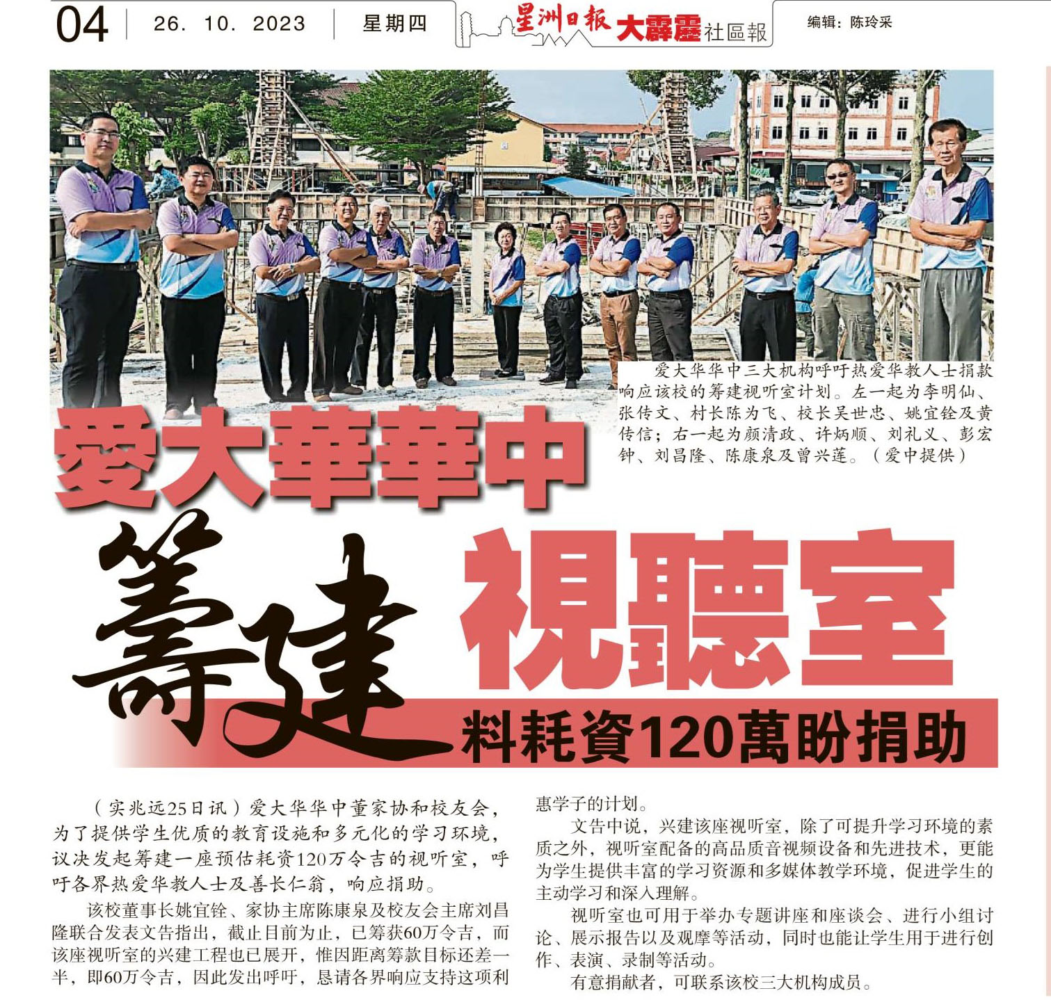 爱大华华中 筹建视听室 料耗资120万盼捐助