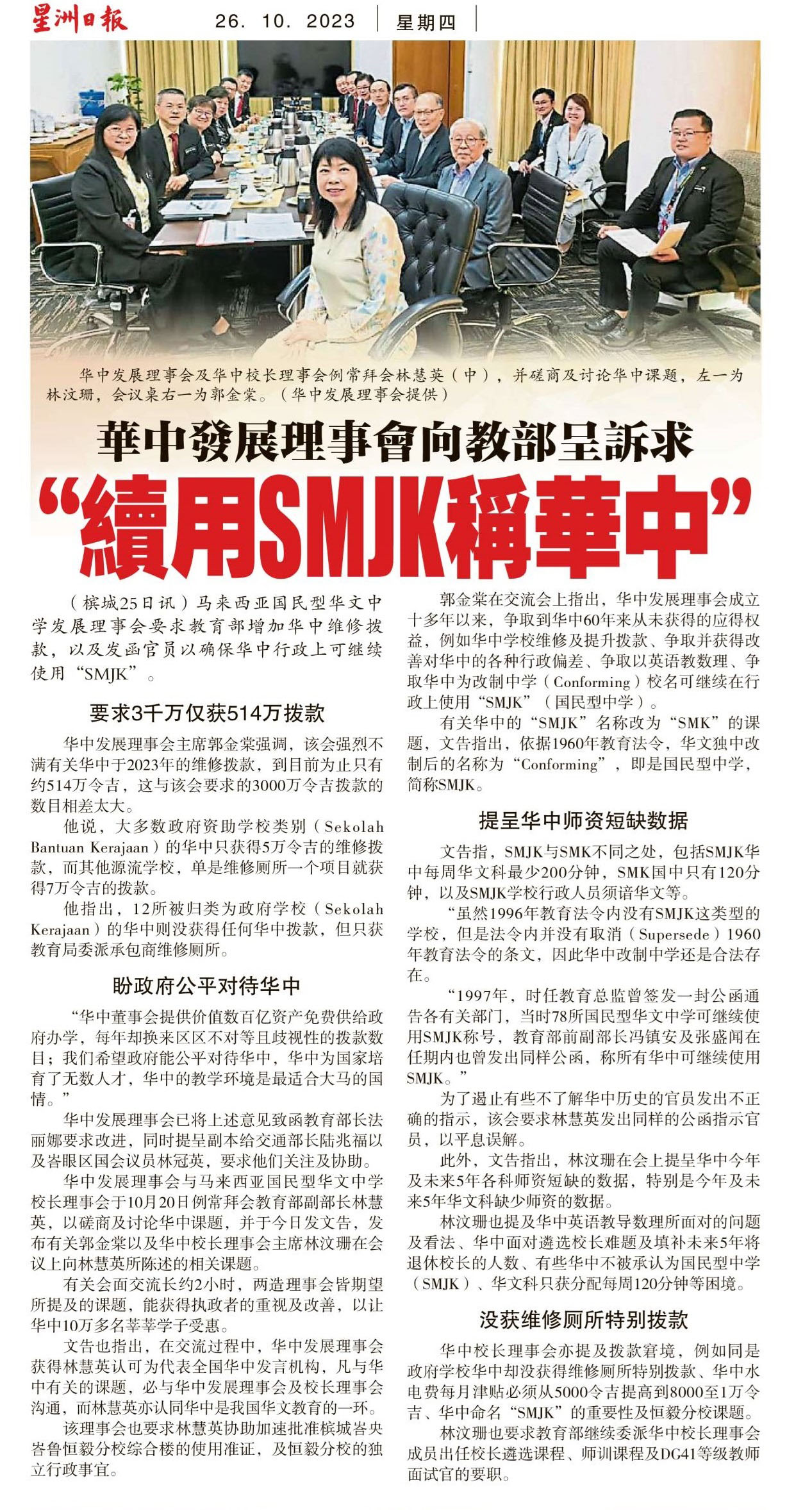 华中发展理事会向教育部呈诉求“续用SMJK称华中” WhatsApp 上一篇文章: 政府拨2000万推行 学校昌明大马大扫除计划 上一页 下一篇文章: 爱大华华中 筹建视听室 料耗资120万盼捐助 下一页
