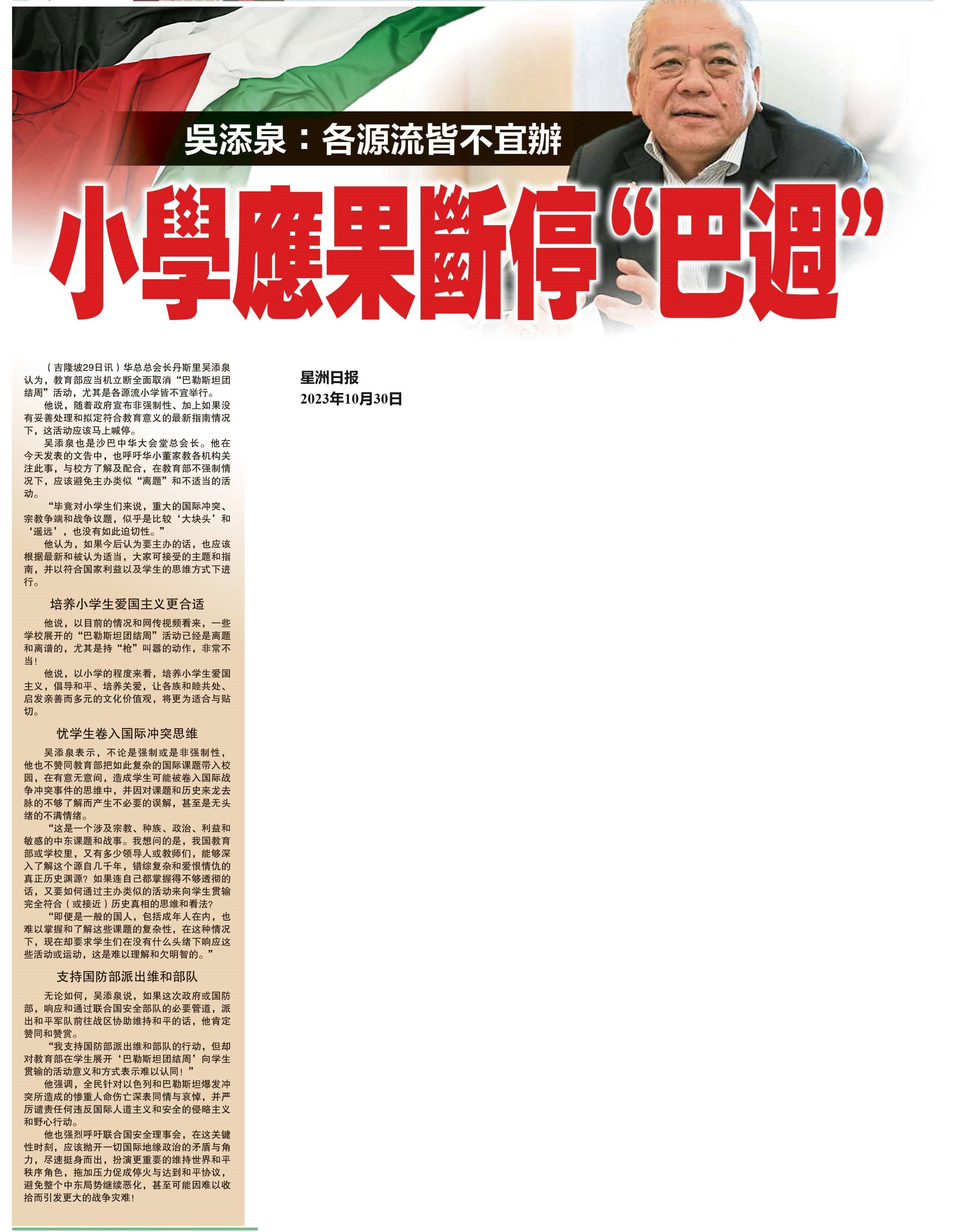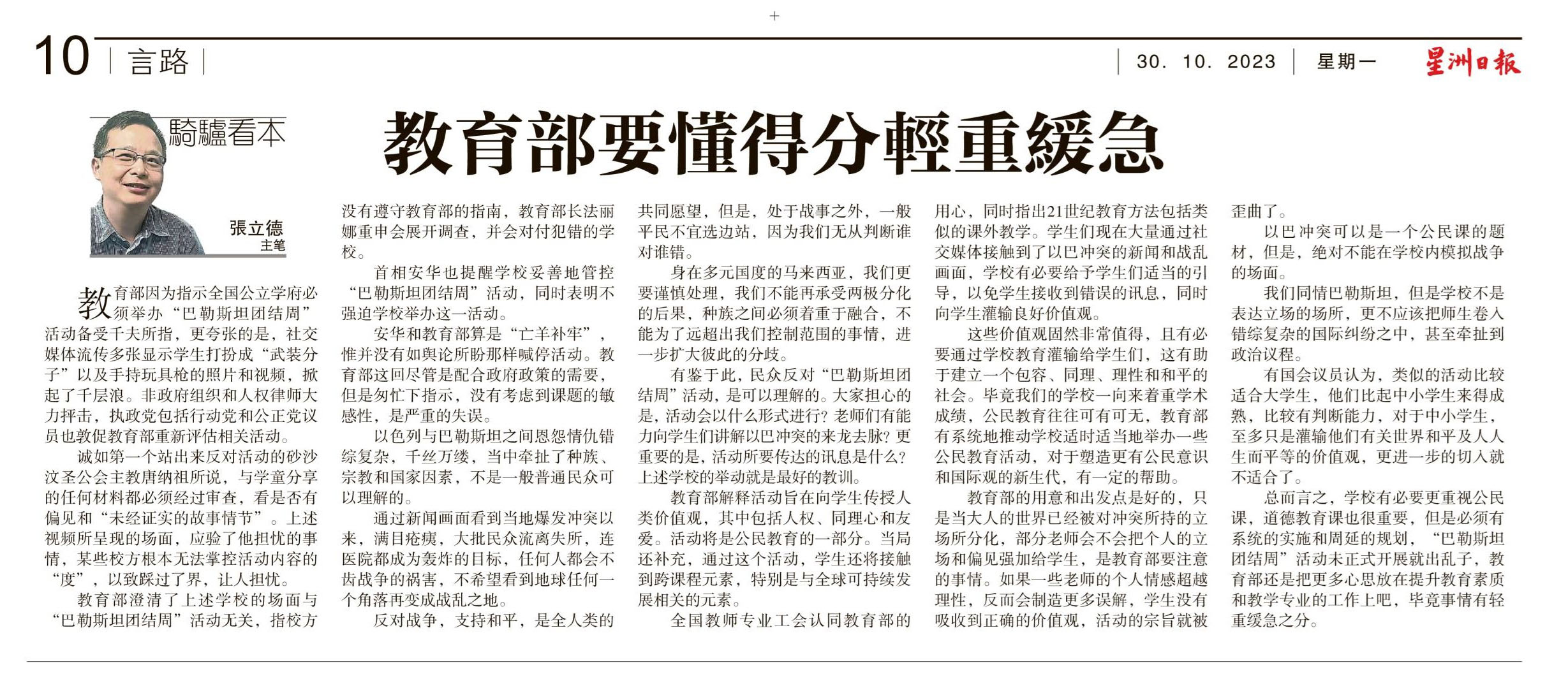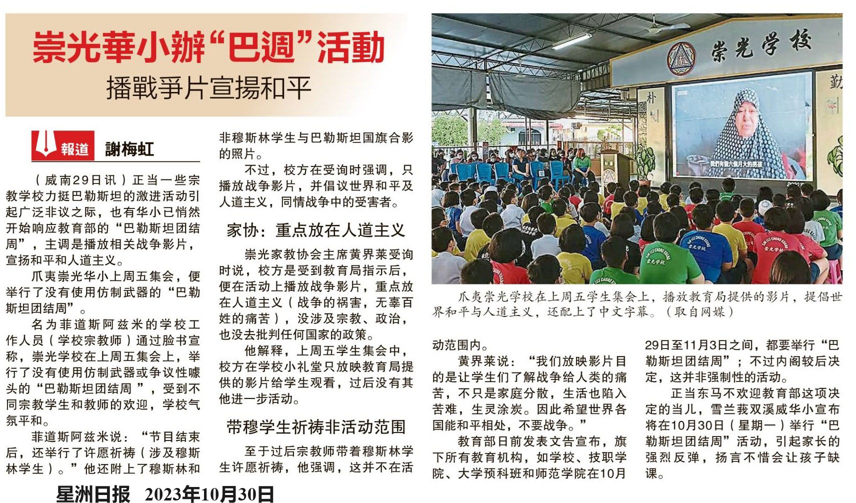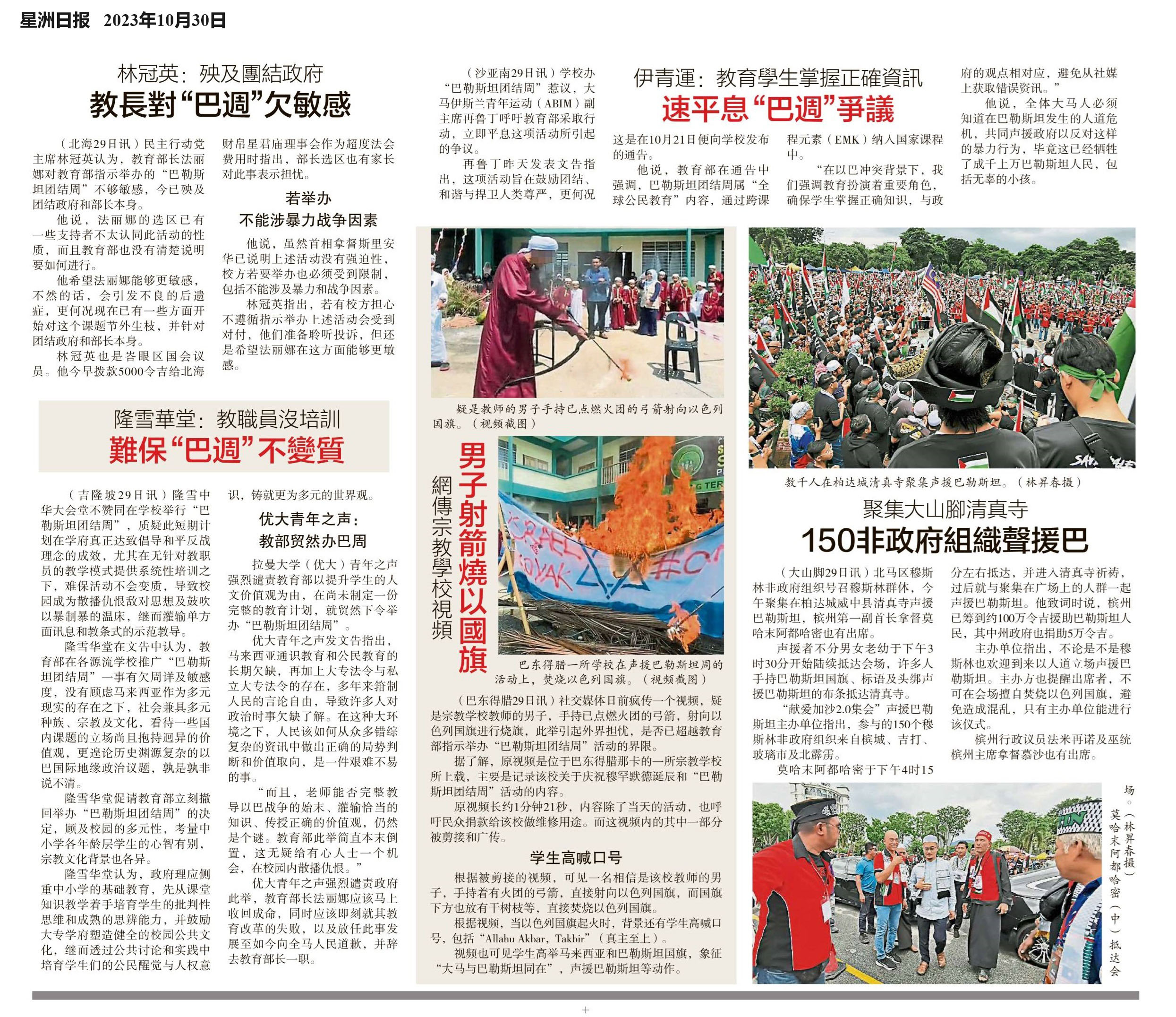 教育部指示学校举行“巴勒斯坦团结周”新闻剪报