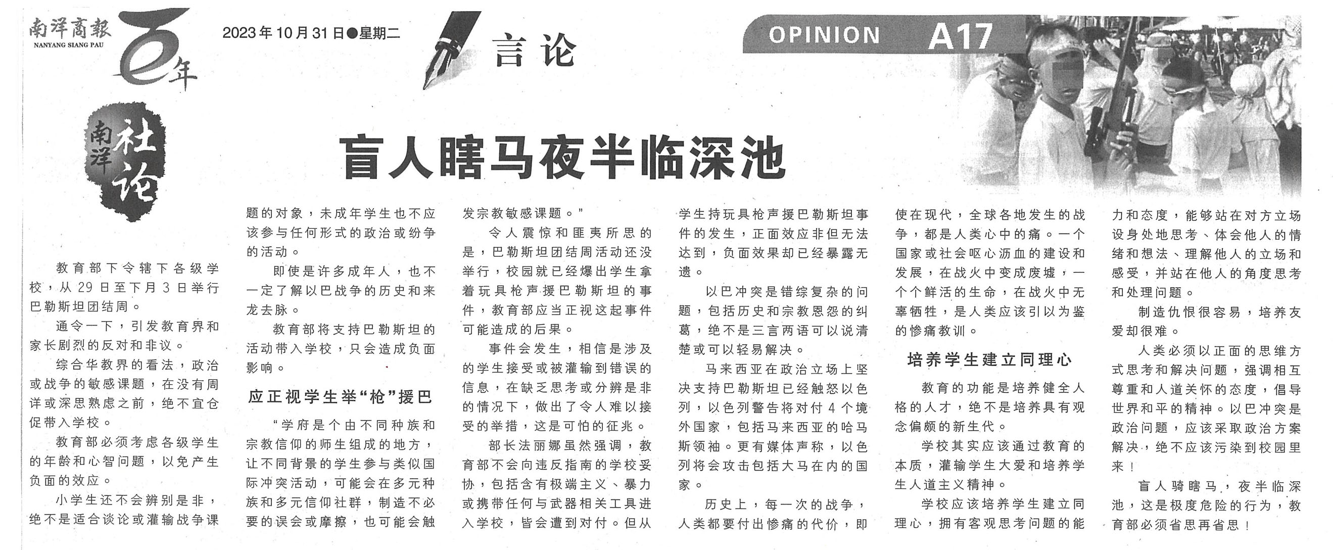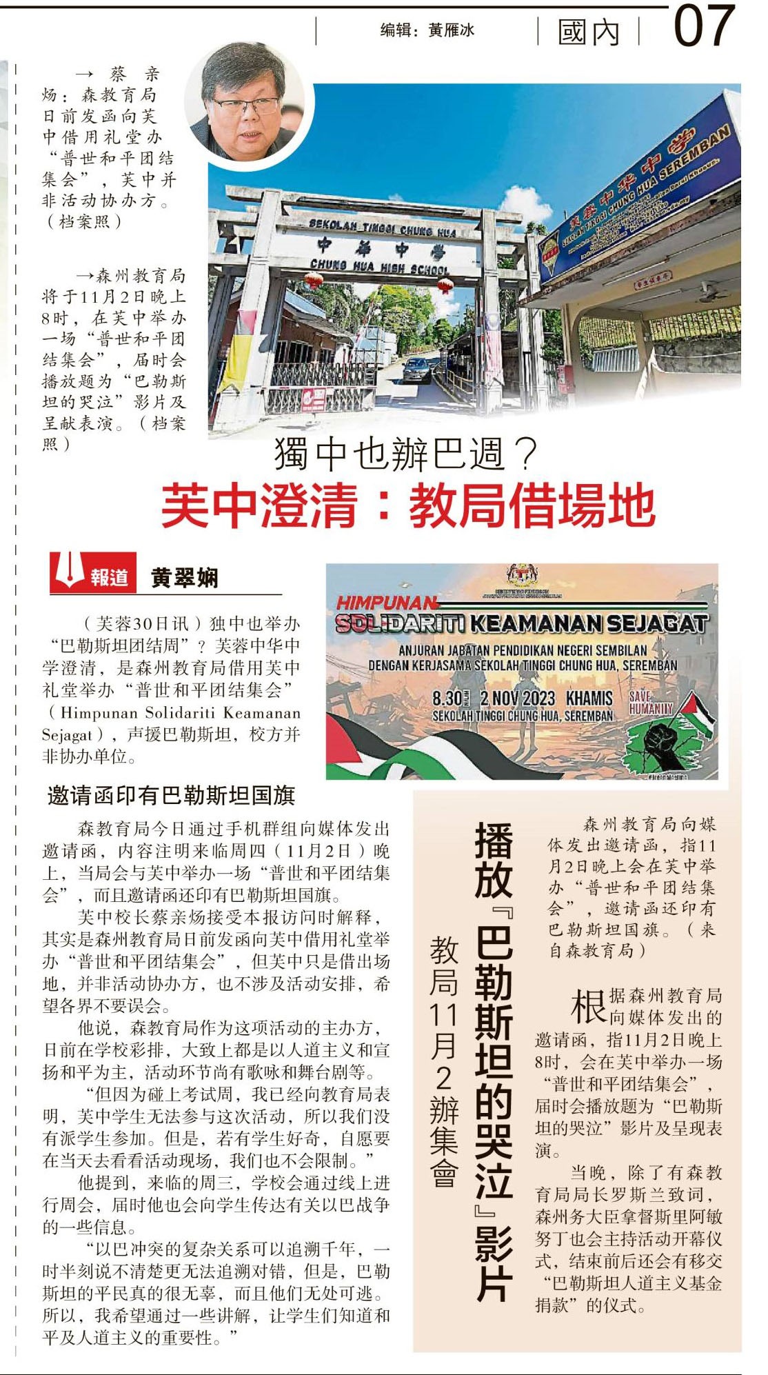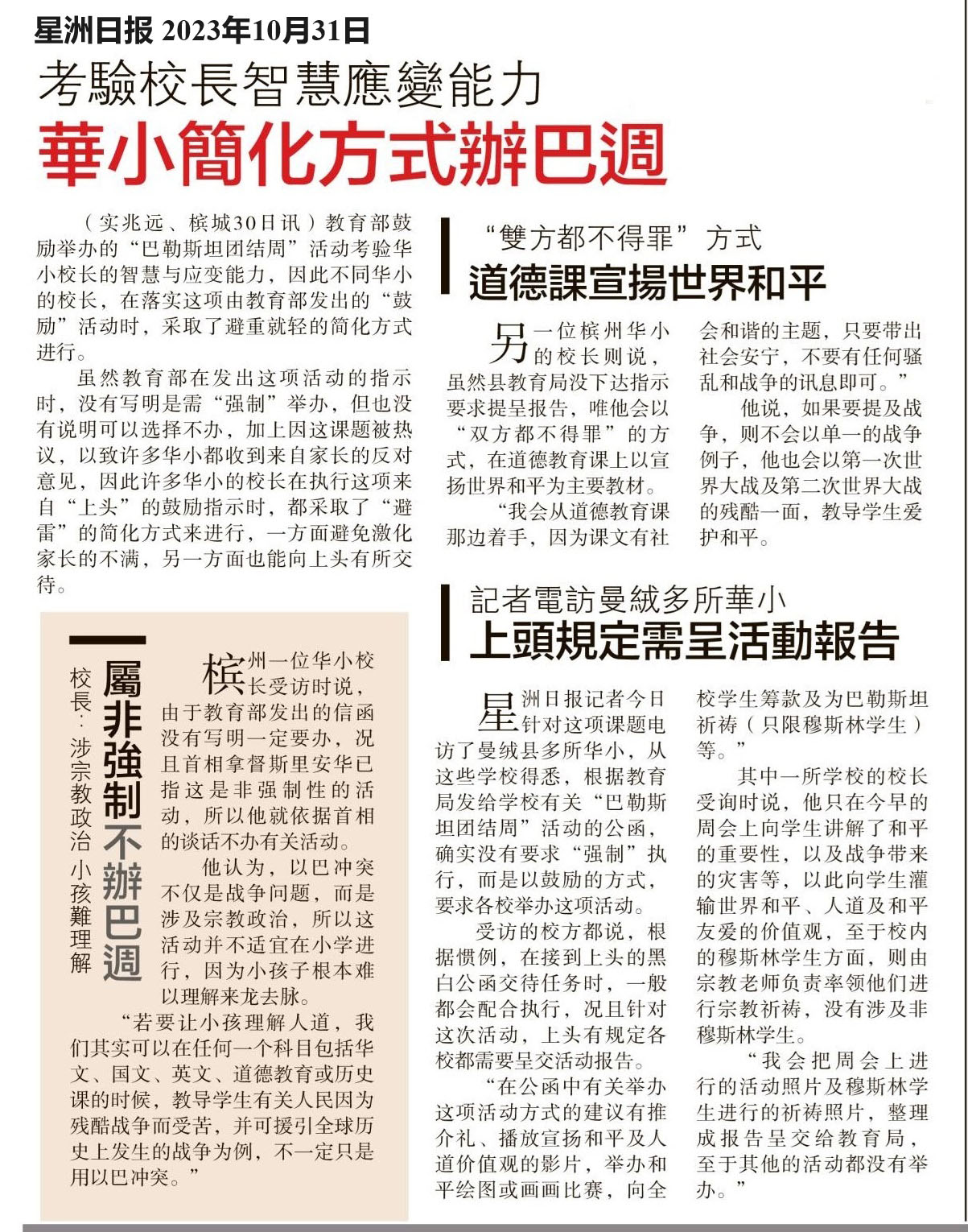 教育部指示学校举行“巴勒斯坦团结周”新闻剪报