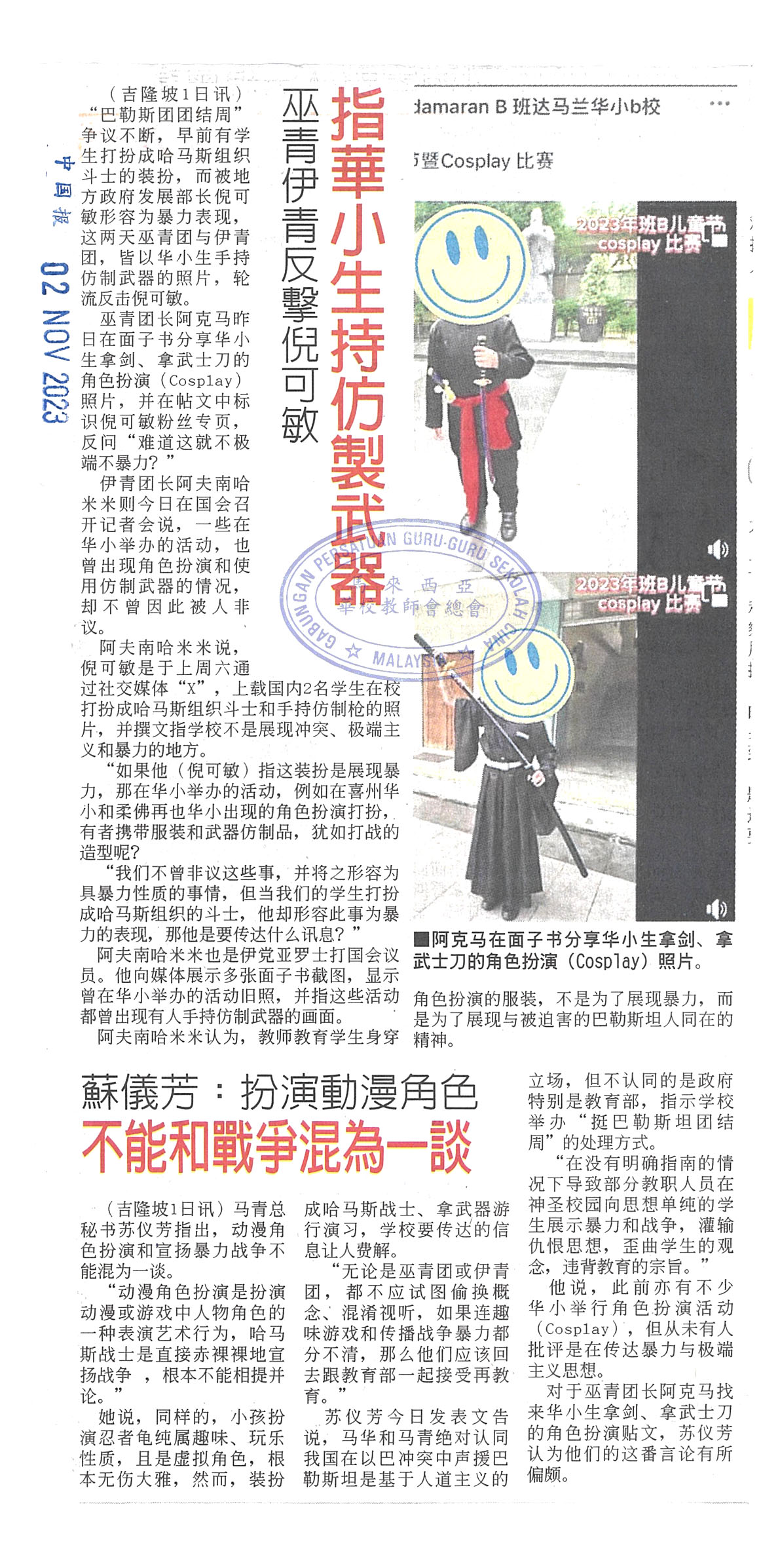 教育部指示学校举行“巴勒斯坦团结周”新闻剪报