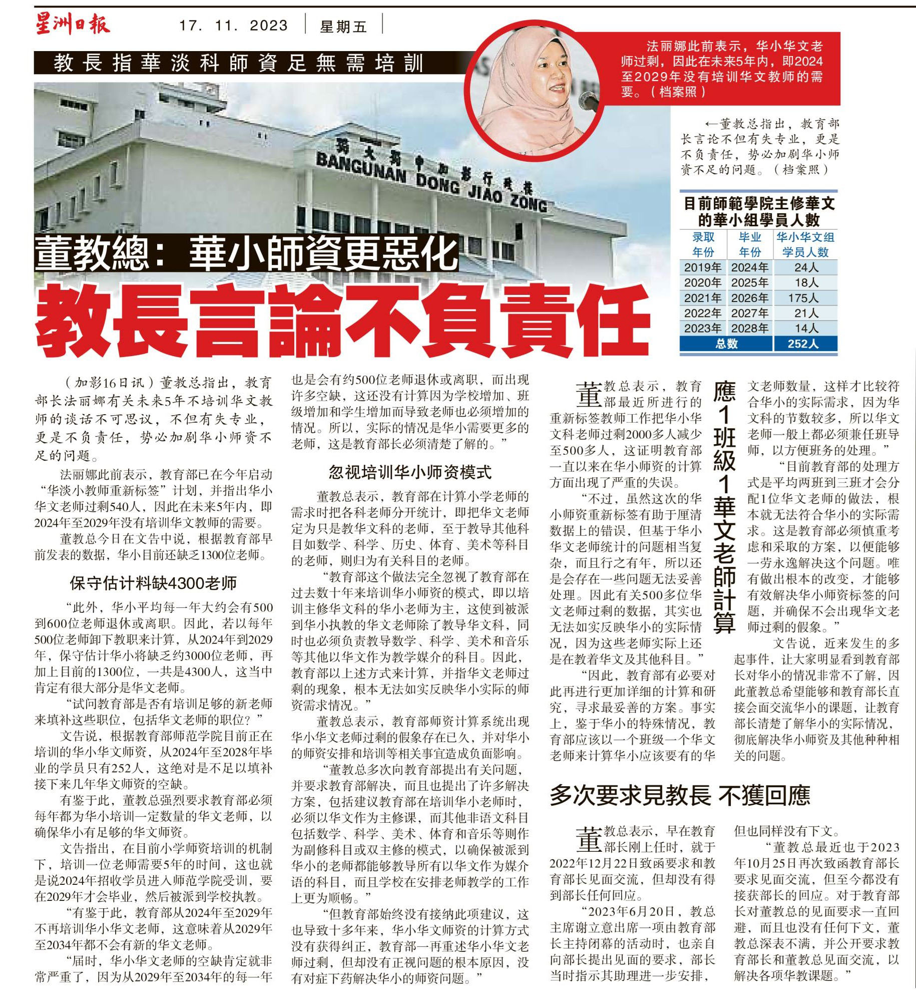 董教总:华小师资更恶化 教长言论不负责任