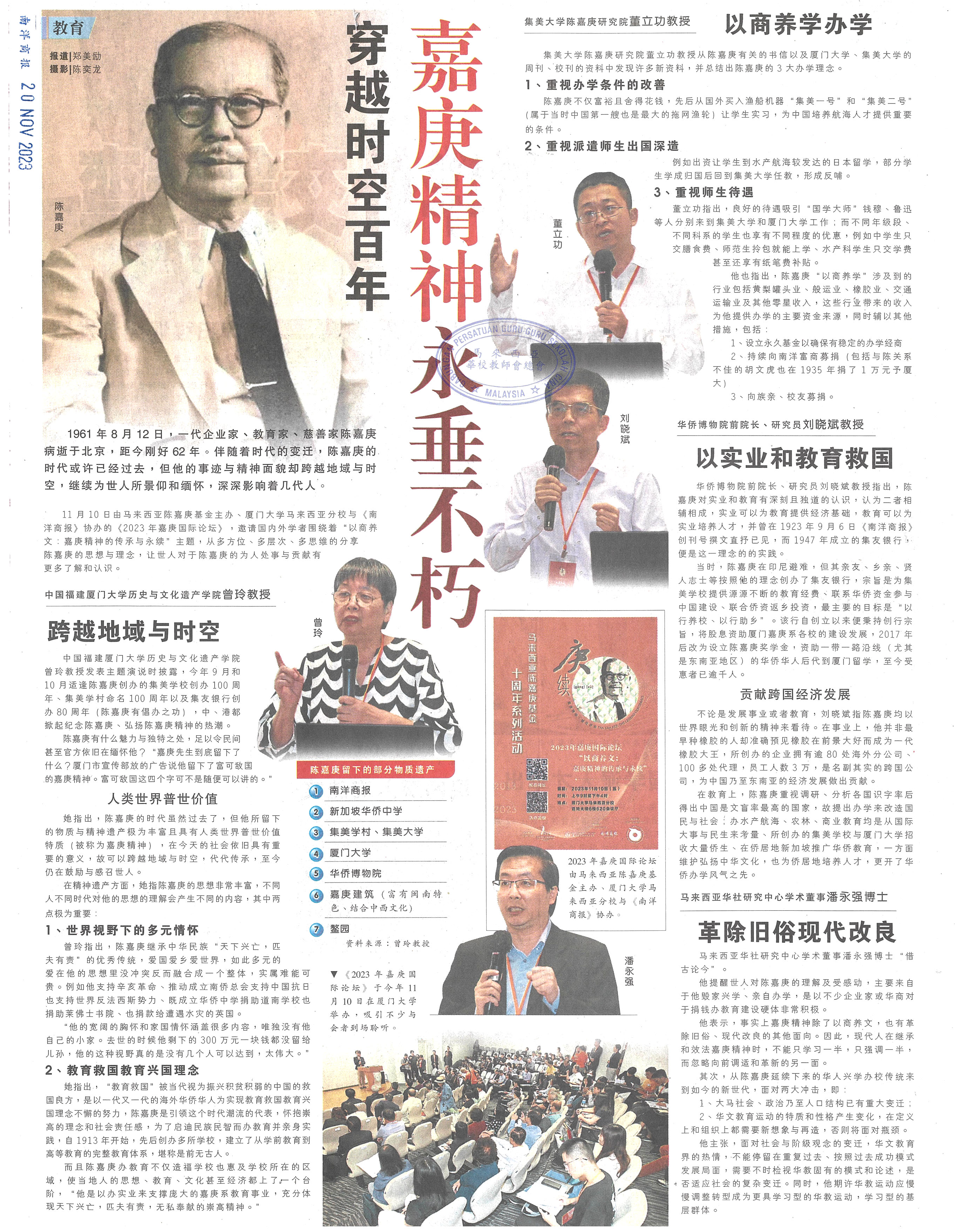 穿越时空百年 嘉庚精神永垂不朽
