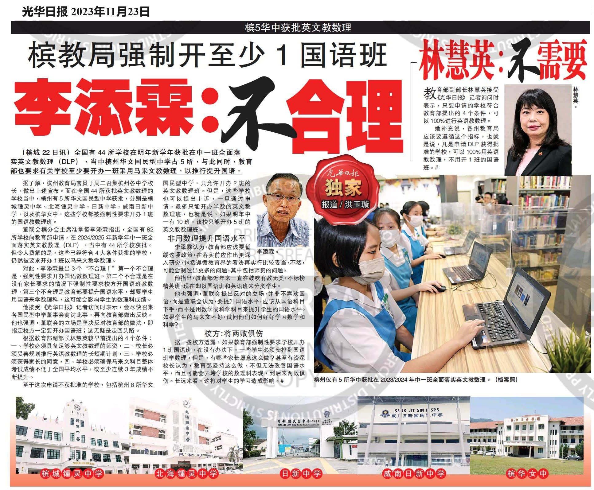 槟教育局强制开至少1国语办 李添霖:不合理