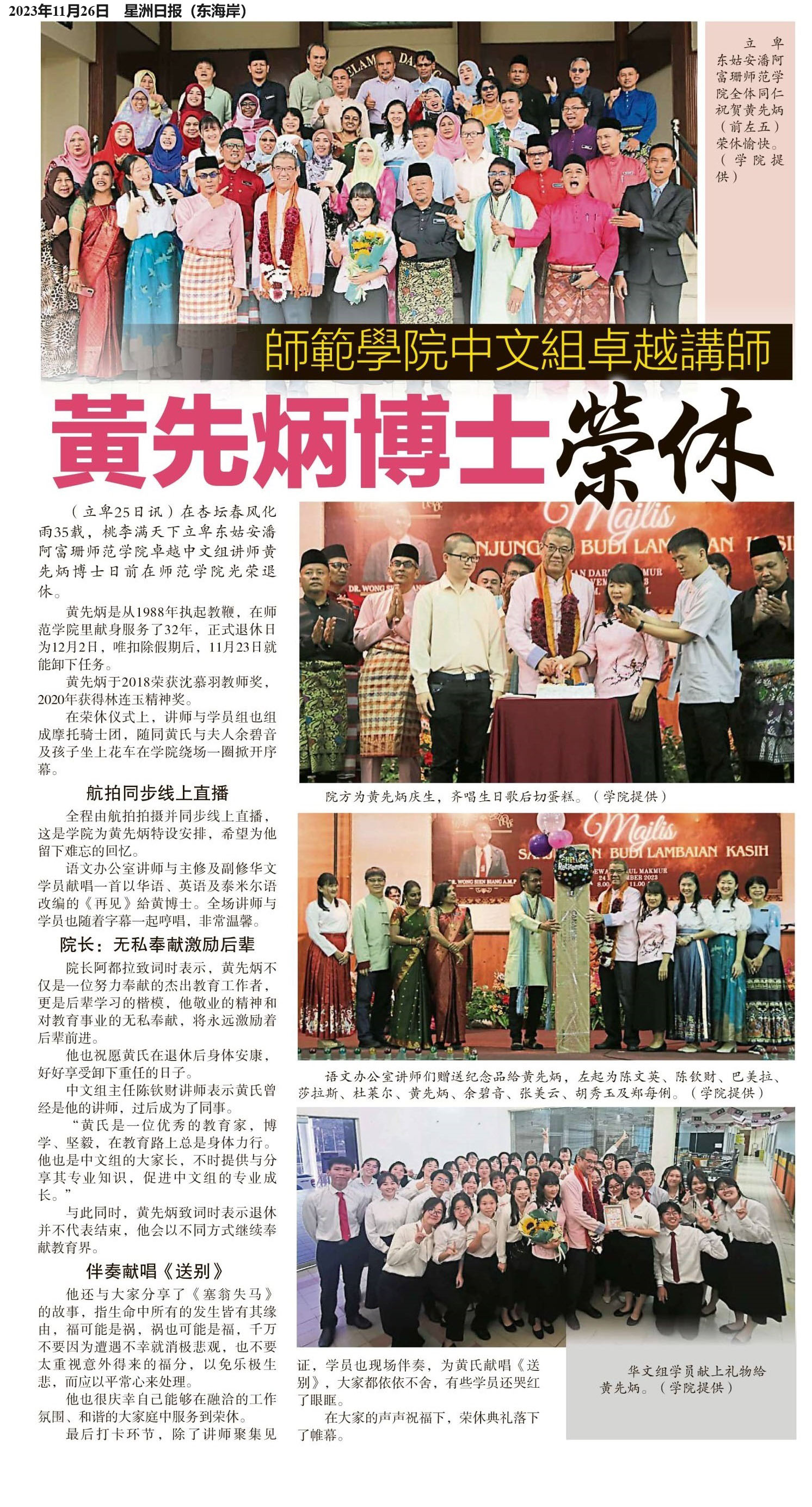 师范学院中文组卓越讲师 黄先炳博士荣休