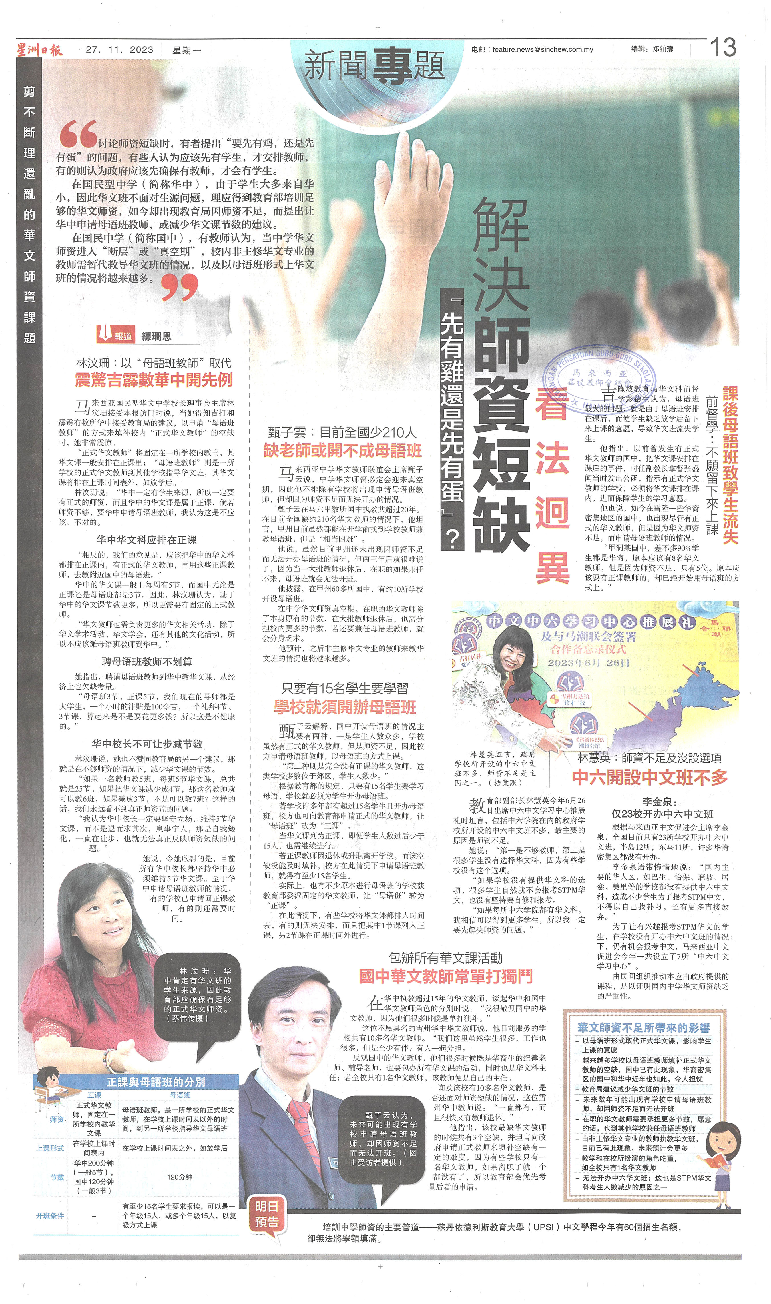 《星洲日报》华文师资短缺新闻报导(3)