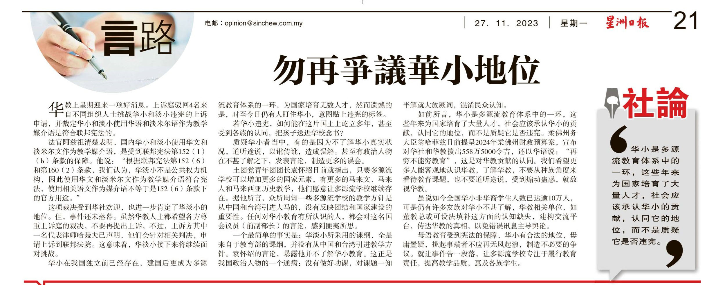 勿再争议华小地位