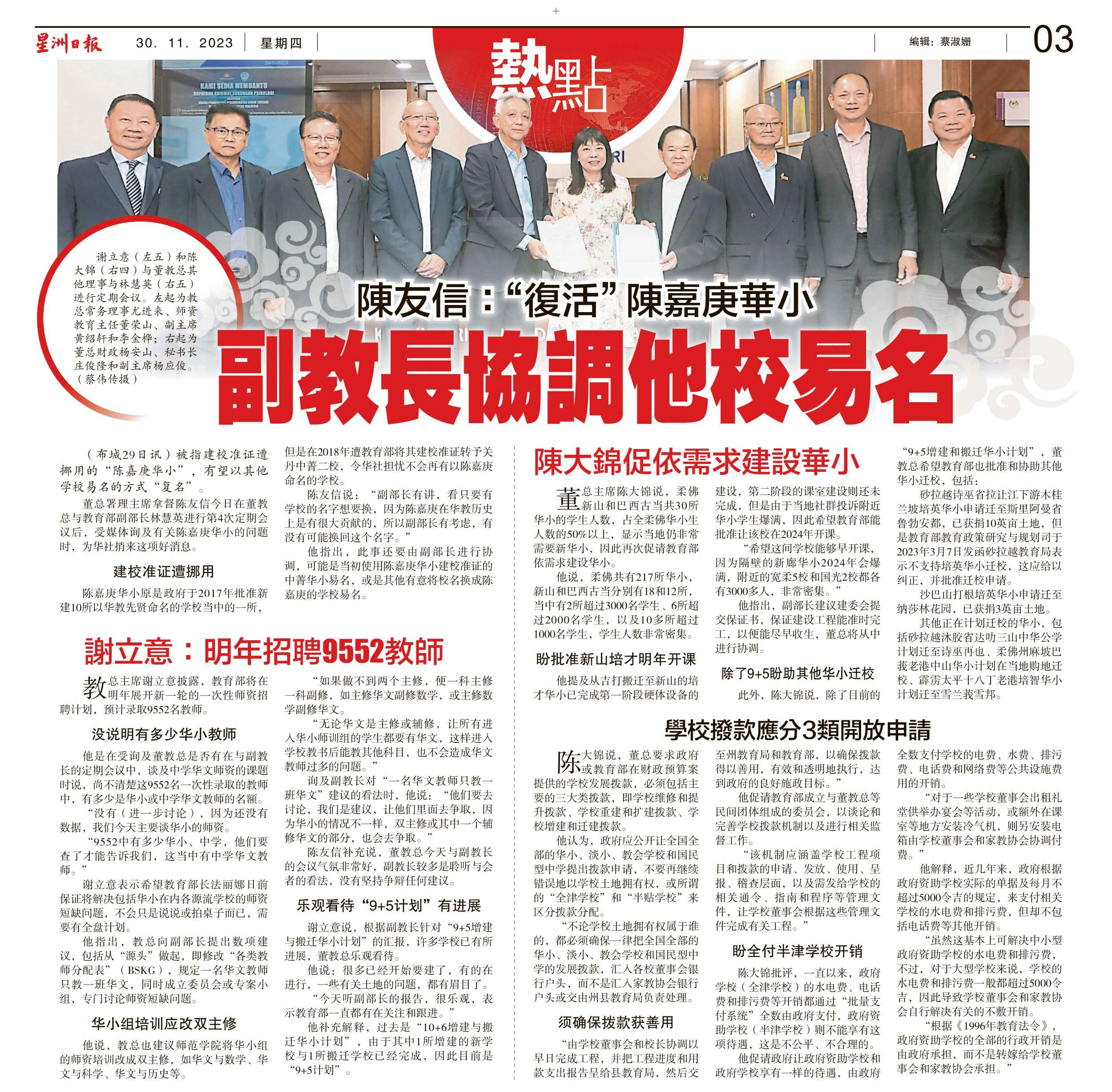 林慧英:邀华教组织定期会议 教育部设华校师资特委会