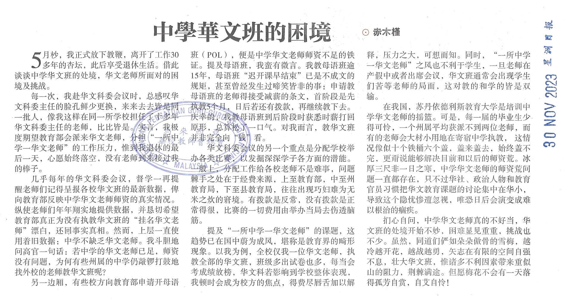 下一篇文章: 《星洲日报》华文师资短缺新闻报导(8)