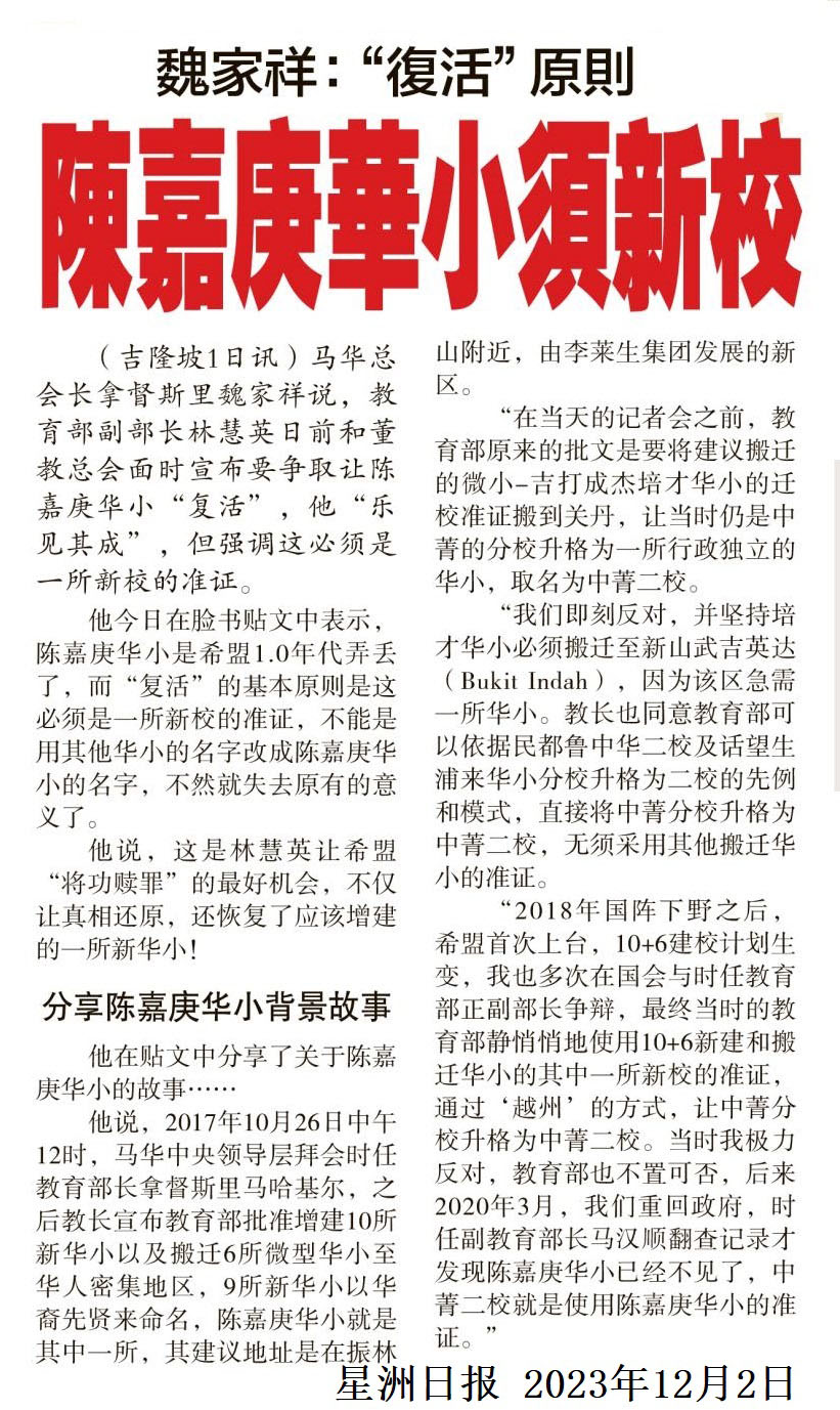 魏家祥:“复活”原则 陈嘉庚华小须新校