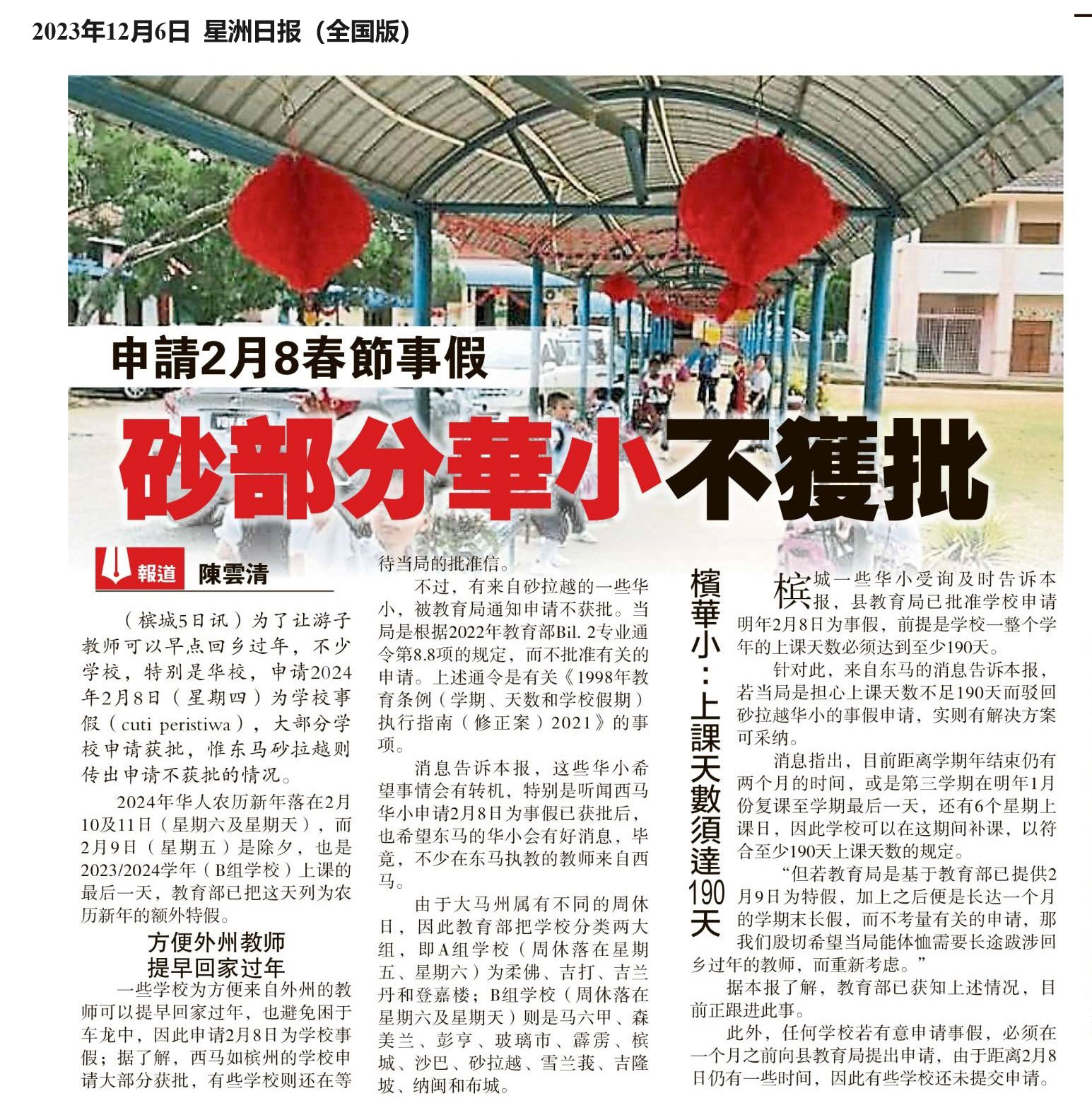 申请2月8春节事假 砂部分华小不获批