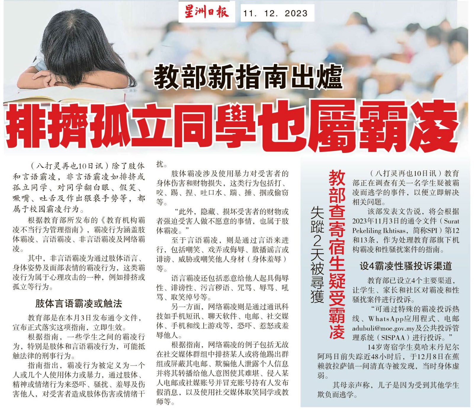 教育部新指南出炉 排挤孤立同学也属霸凌