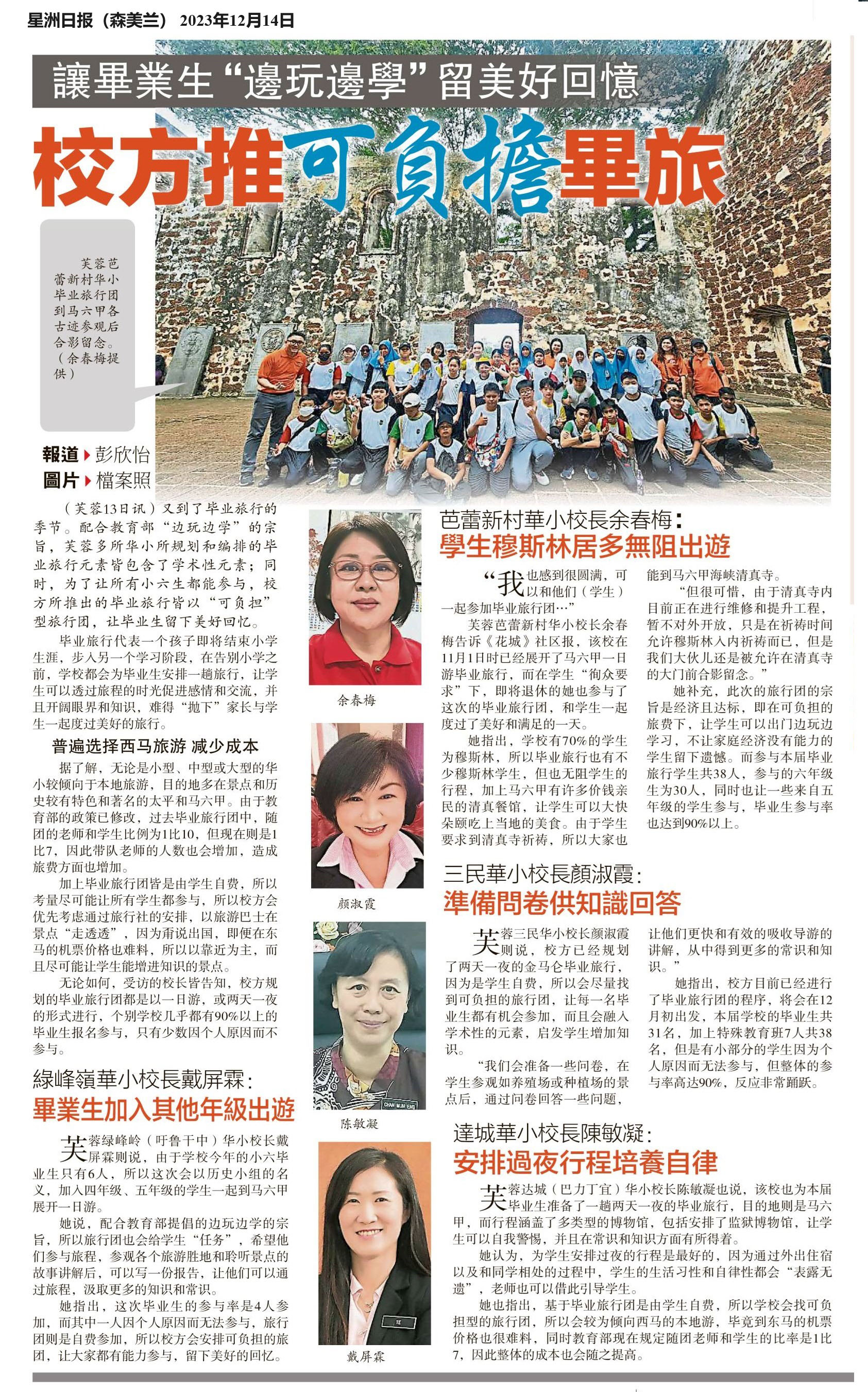 让毕业生“边玩边学”留美好回忆 校方推可负担毕旅 WhatsApp 上一篇文章: 恒毅分校综合楼启用 骆荣伟:盼尽快获独立行政权 上一页 下一篇文章: 槟威董联华中董事会吁政府依家长意愿英语教数理 下一页