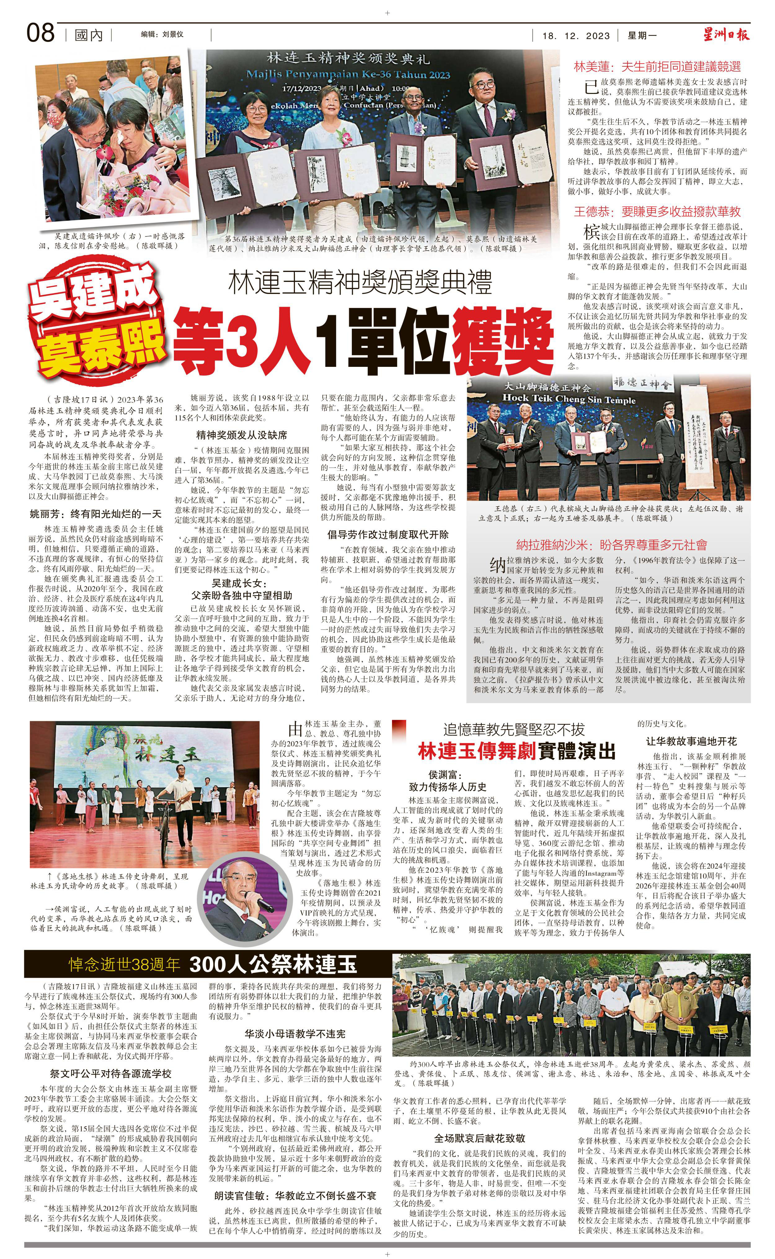 林连玉精神奖颁奖典礼 吴建成莫泰熙等3人1单位获奖