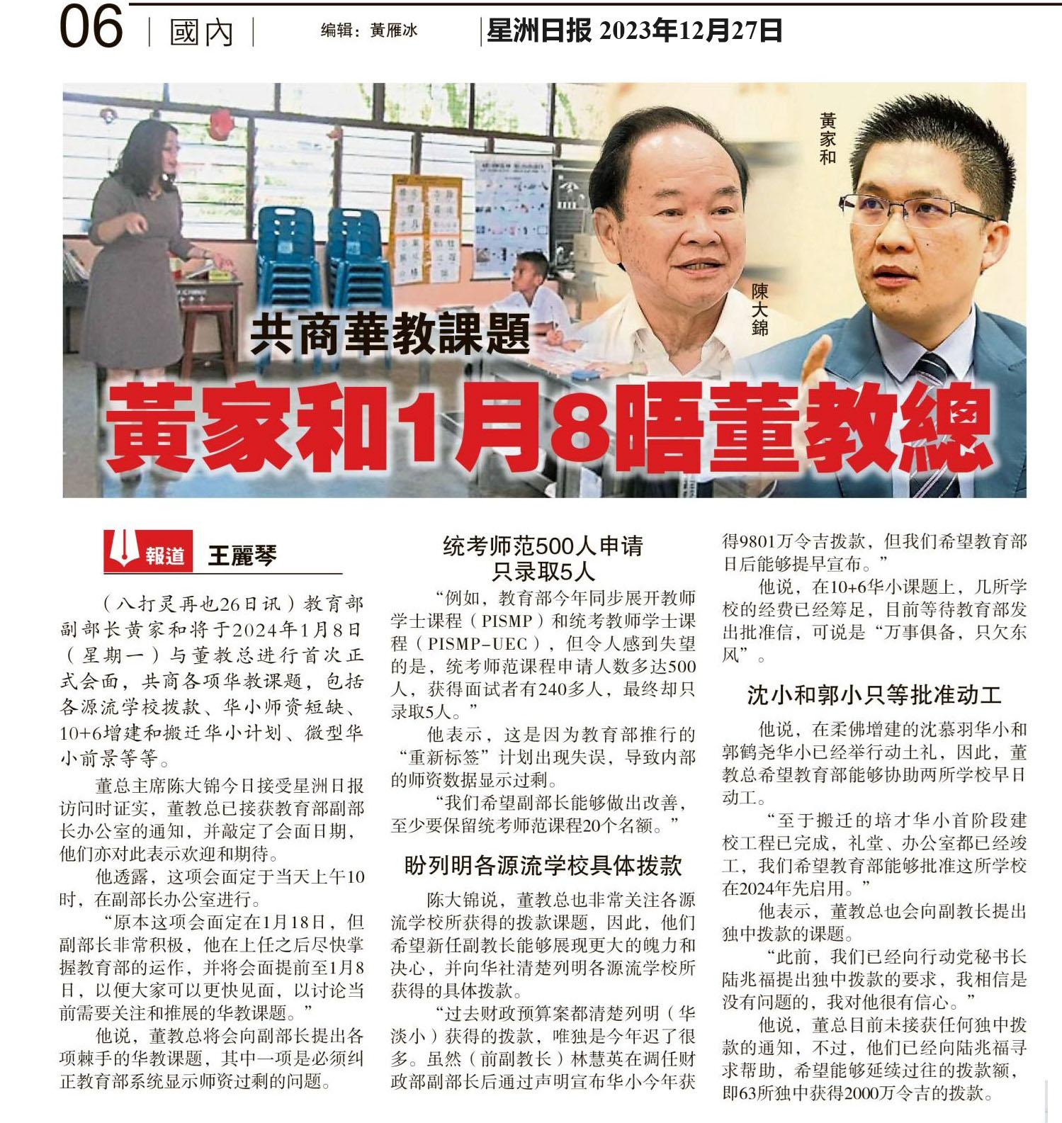 共商华教课题 黄家和1月8晤董教总